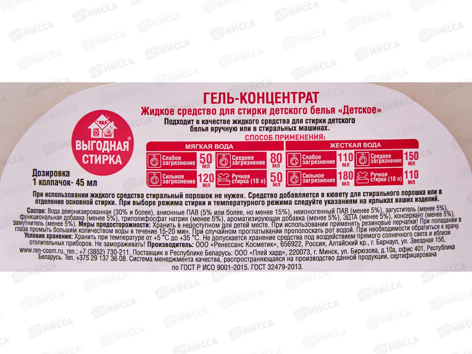ВЫГОДНАЯ СТИРКА Гель для стирки Детский 2л 3772