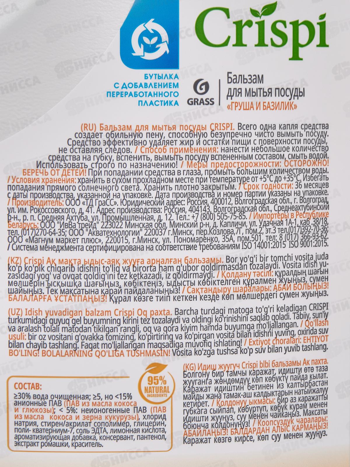 CRISPI бальзам для мытья посуды Груша и базилик 2500мл *4 125949