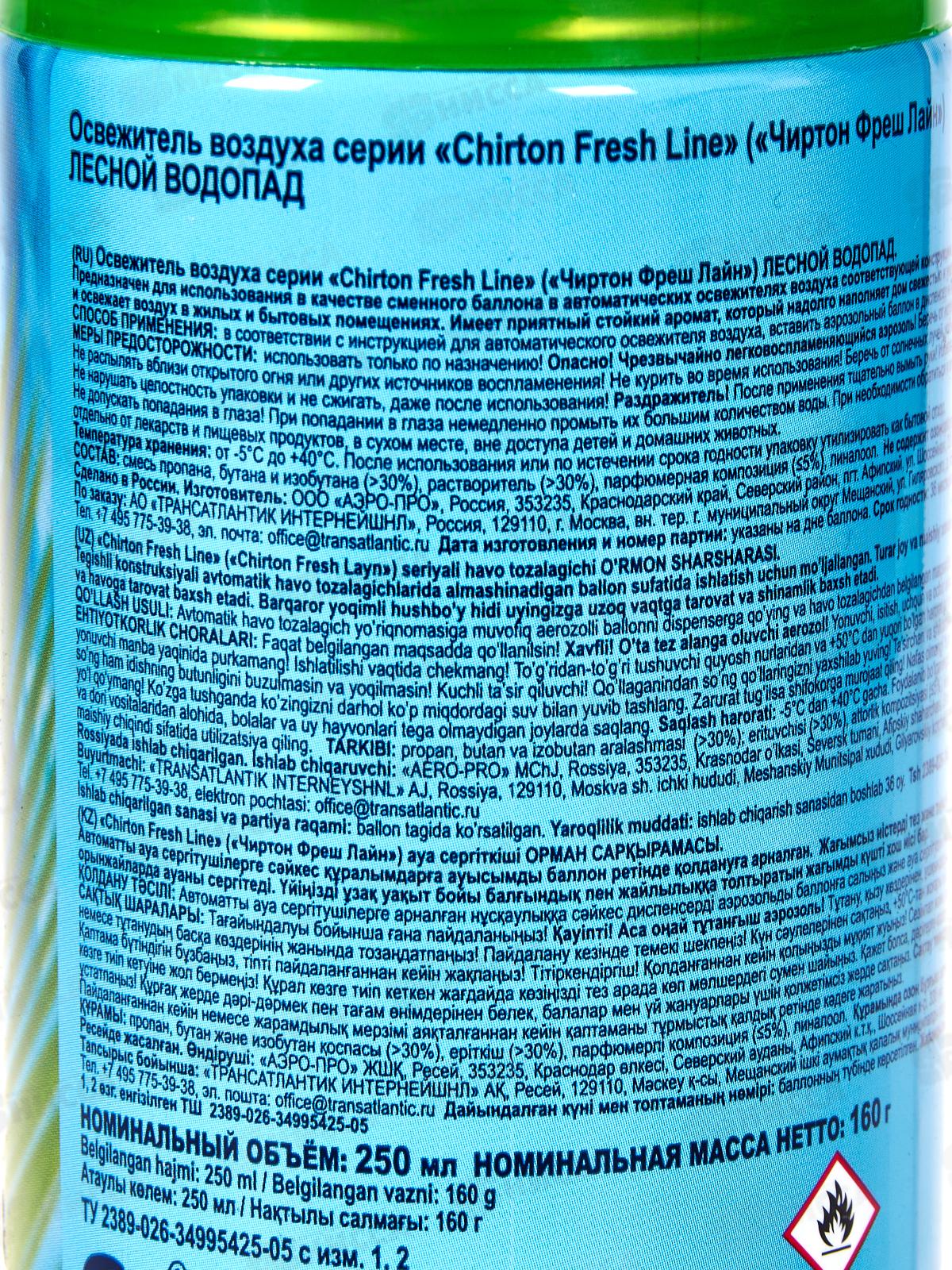 Чиртон освежитель Фреш Лайн Лесной водопад запасной балон 250мл *6
