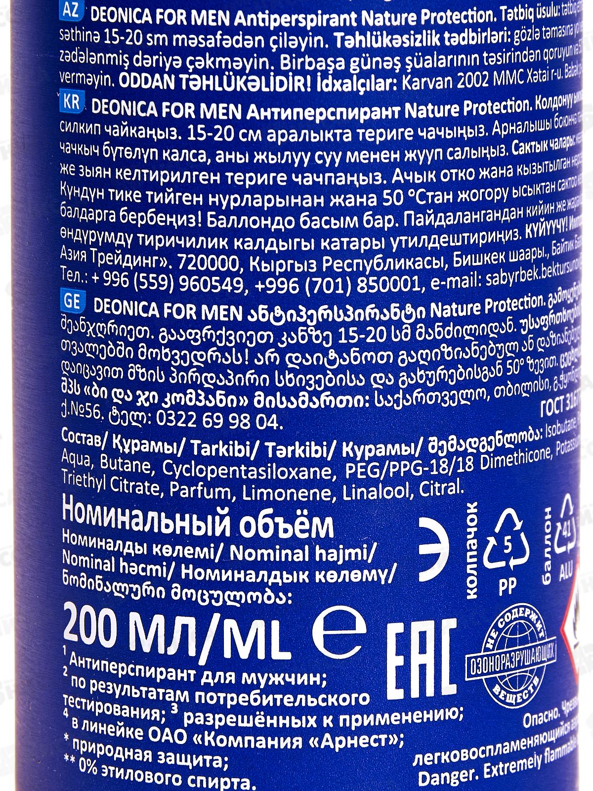 Антиперспирант Deonica мужской 200мл Nature Protection *6