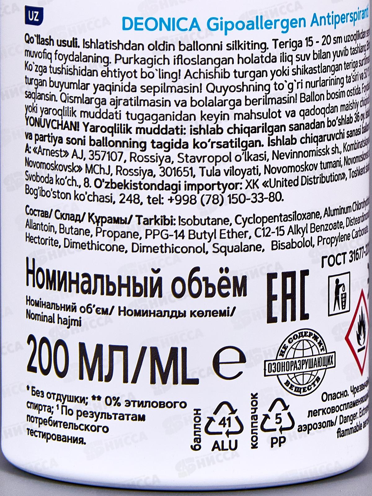 Антиперспирант Deonica 200мл Гипоаллергенный *6