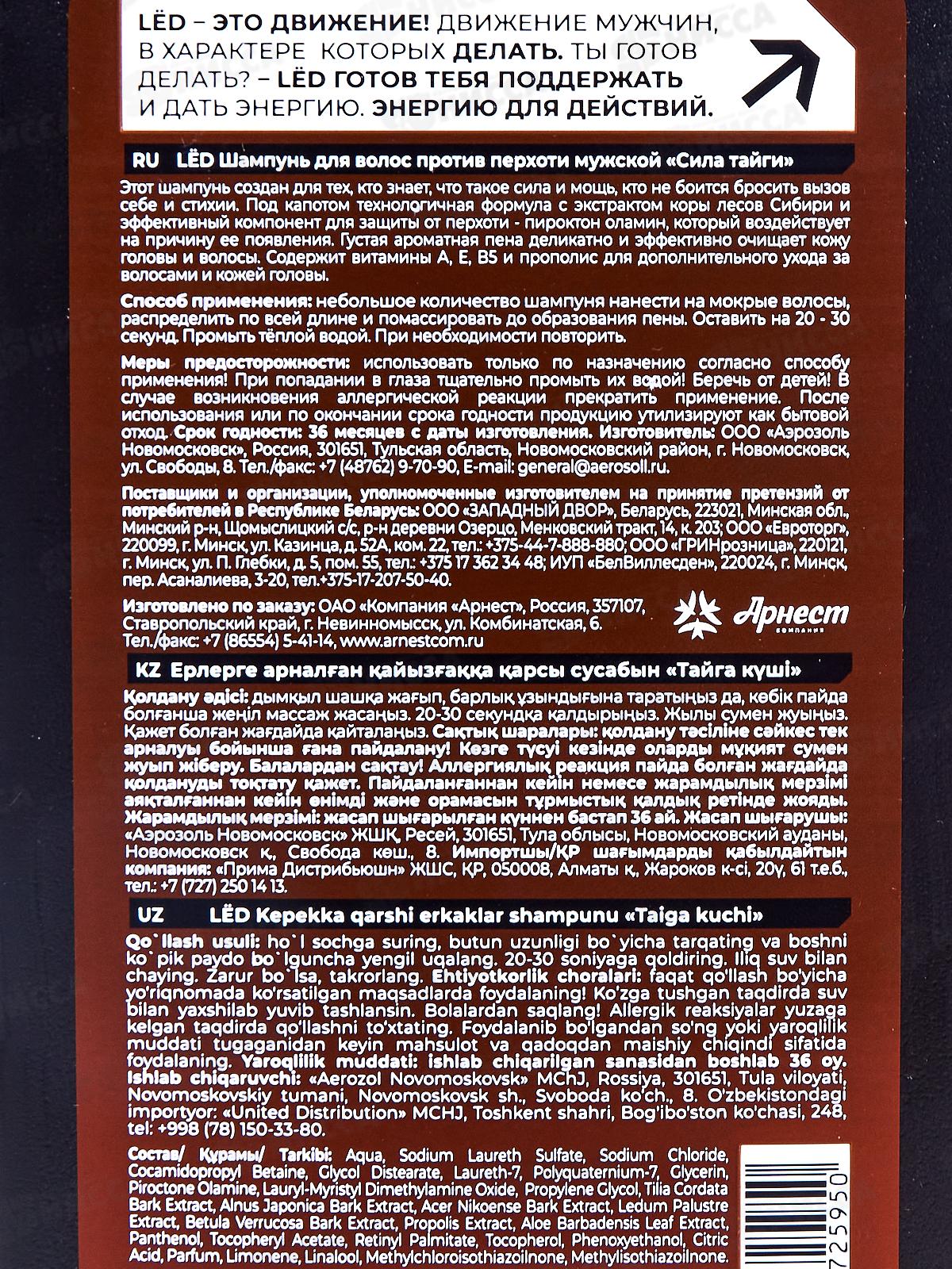 LЁD Шампунь для волос мужской Против перхоти Сила тайги 490мл