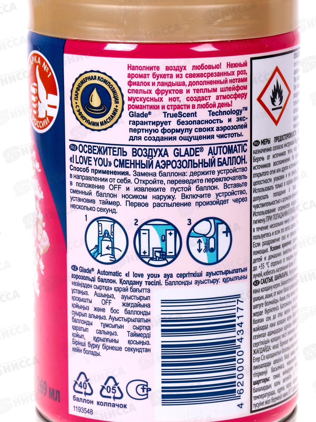 ГЛЭЙД автоматический освежитель воздуха 269мл запосной балон I Love you *6