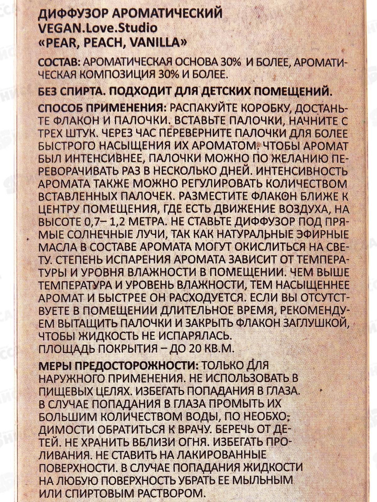 Диффузор аромат Vegan L.S. Pear Peach Vanilla 100мл *18