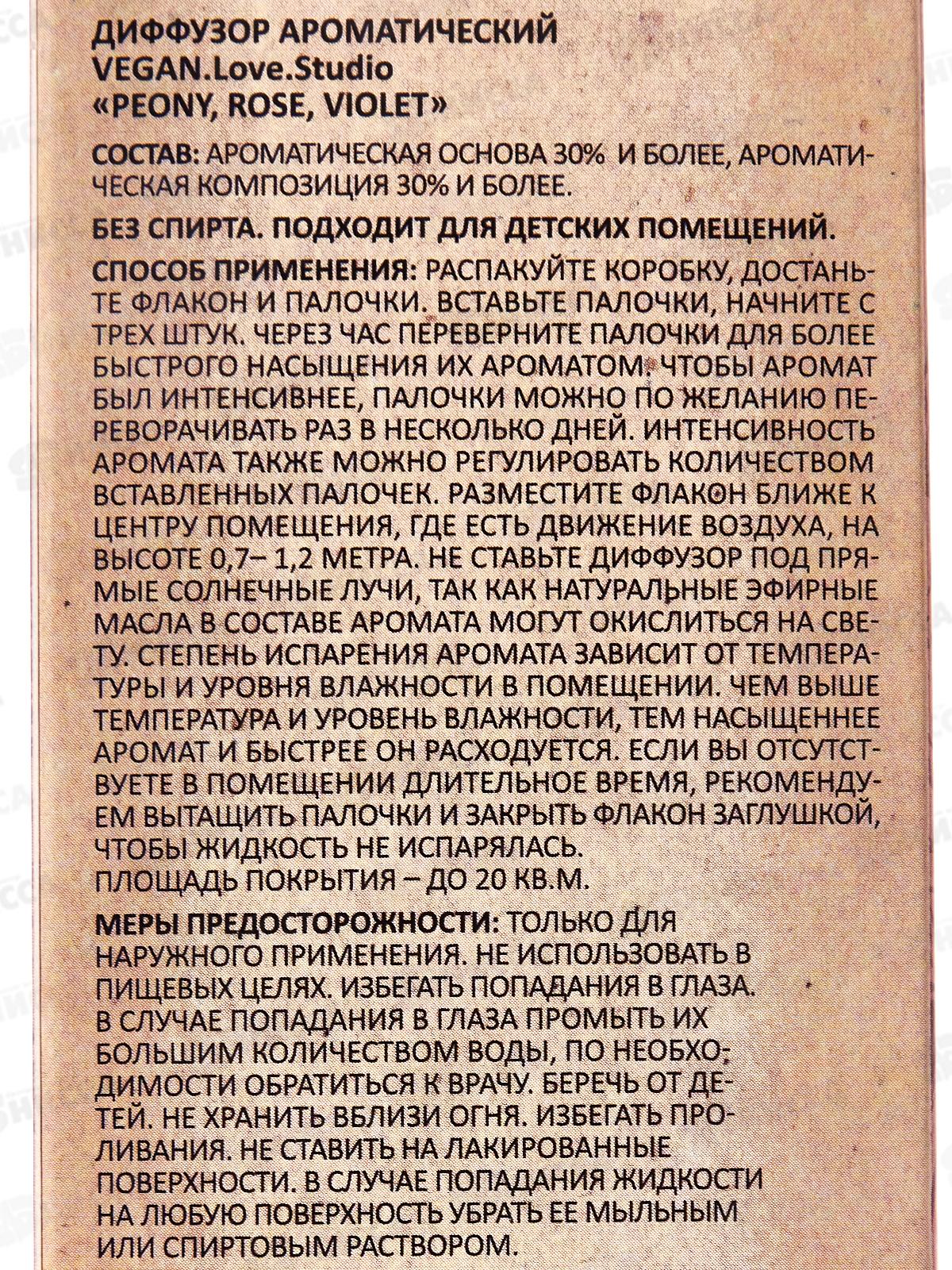 Диффузор аромат Vegan L.S. Peony Rose Violet 100мл *18