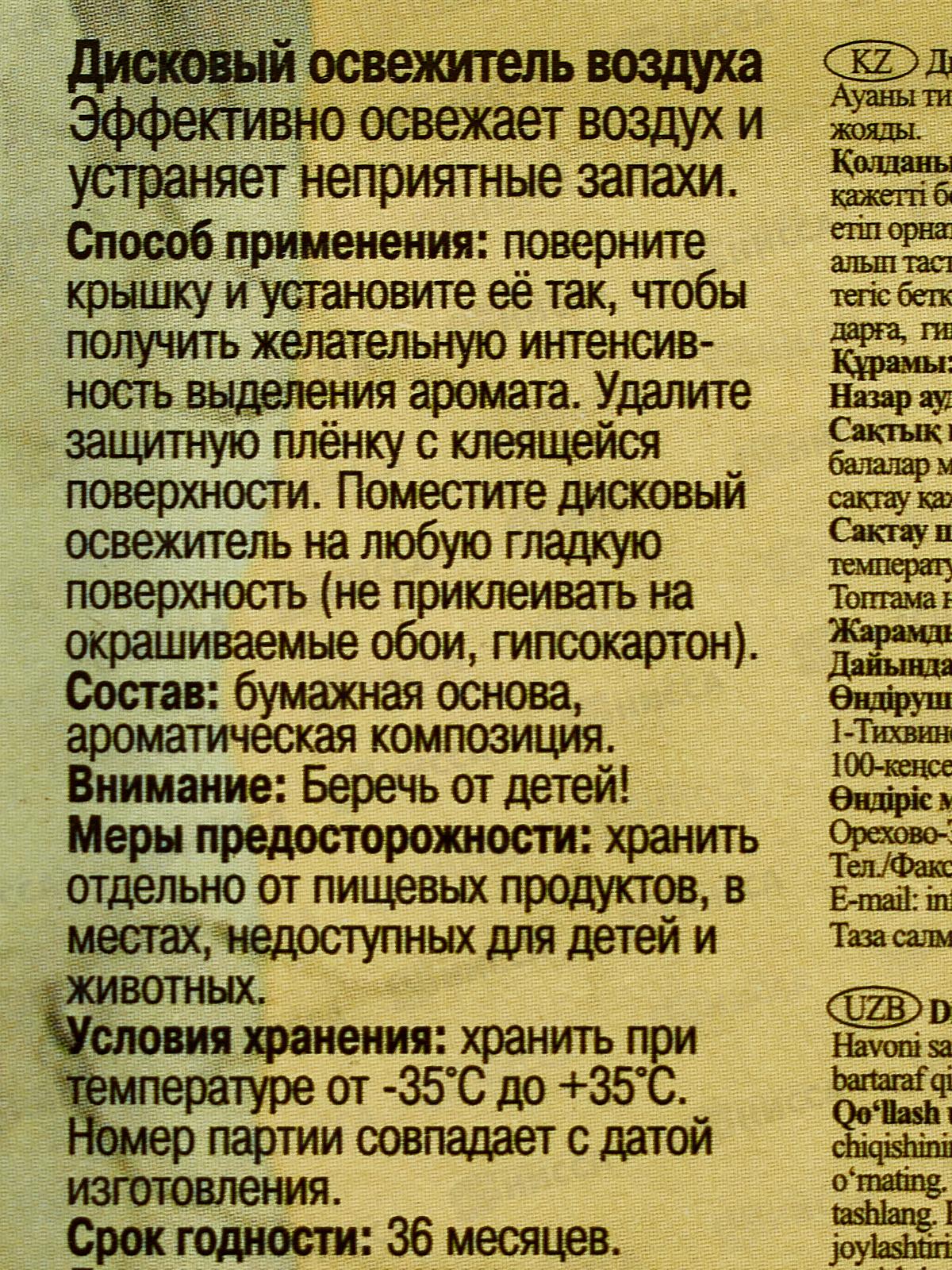 Форма выпуска: Дисковый освежитель