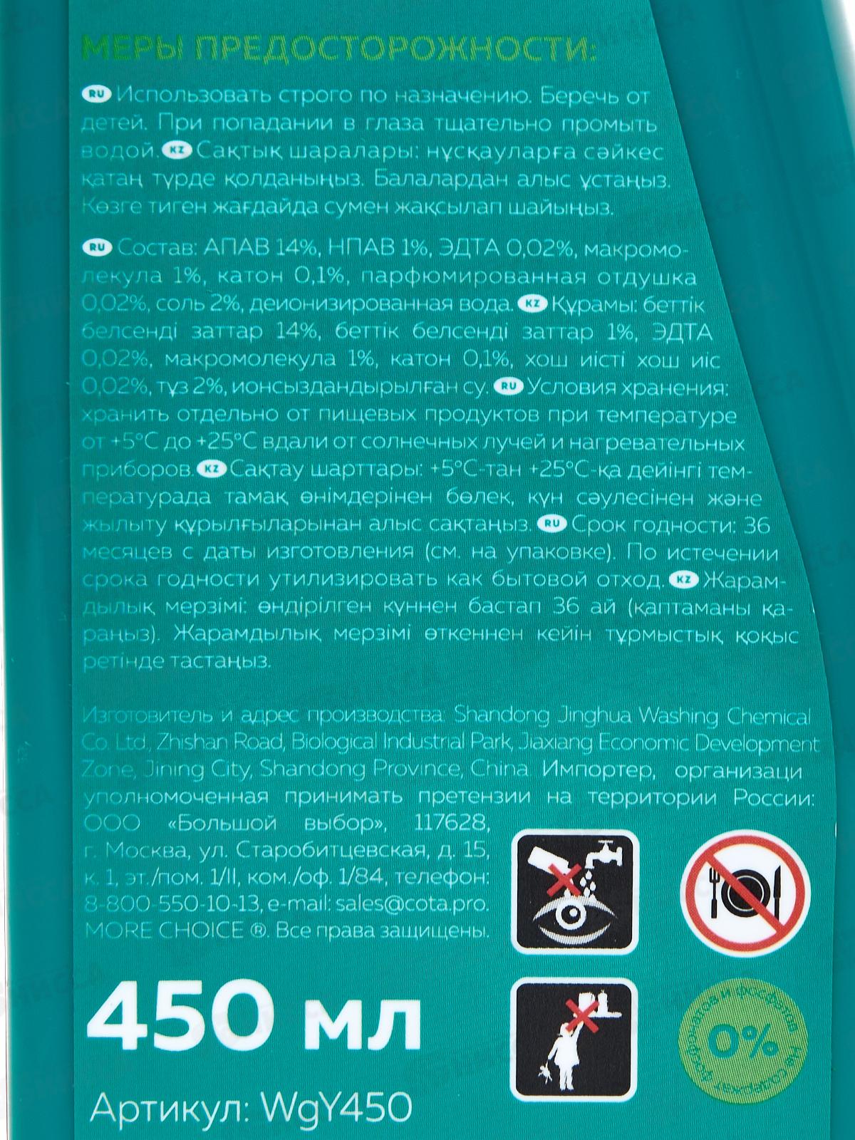 MC Was chen Гель для мытья посуды More choice Яблоко 450мл *12