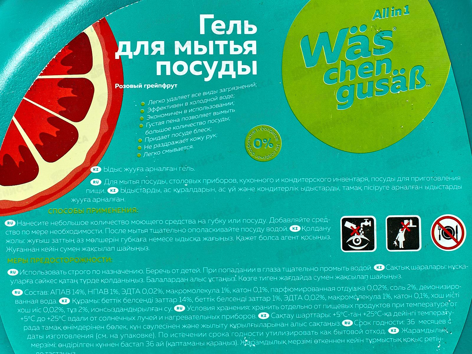 Состав: АПАВ 14%, НПАВ 1%, ЭДТА 0,02%, макромолекула 1%, катон 0,1%, отдушка 0,2%, соль 2%, вода деионизированная.
