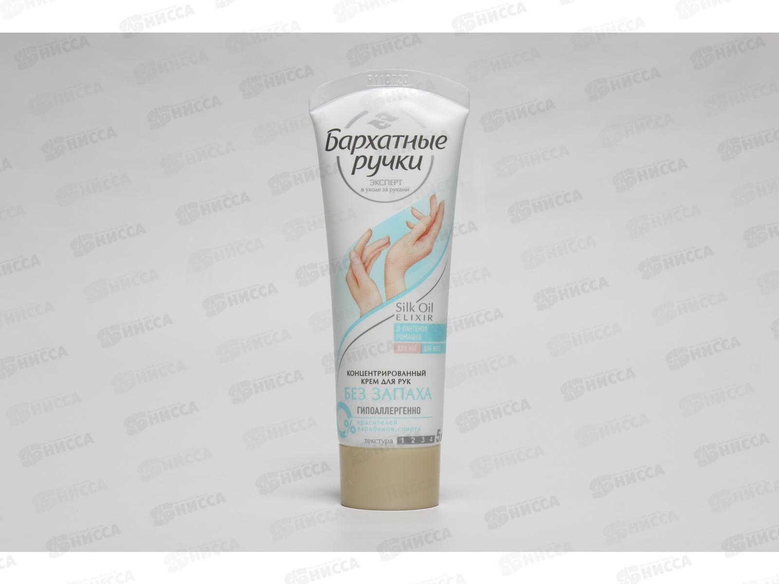 Сухая и чувствительная кожа рук требует специального и бережного ухода. Интенсивный крем с формулой Silk Oil Elixir, усиленной пантенолом и ромашкой, разработан специально для быстрого восстановления сухой и чувствительной кожи рук. Отдушки могут являться катализатором аллергии. Многие потребители не могут использовать крема с ярко-выраженным запахом из-за аллергической реакции. Крем Бархатные ручки не содержит отдушки и является гипоаллергенным, подходит для использования в сезон аллергии. Продукт рекомендован дерматологами и аллергологами.