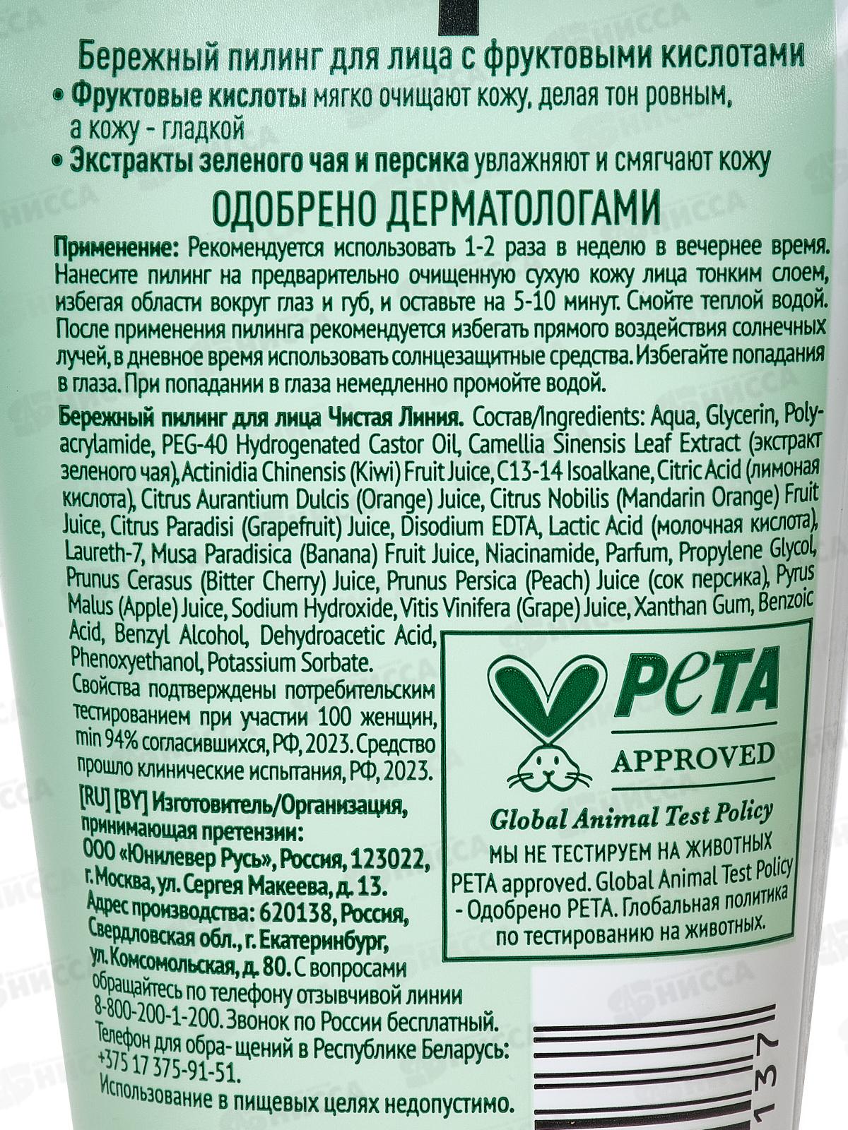 Концерн Калина Чистая Линия Бережный пилинг для лица 50мл *12