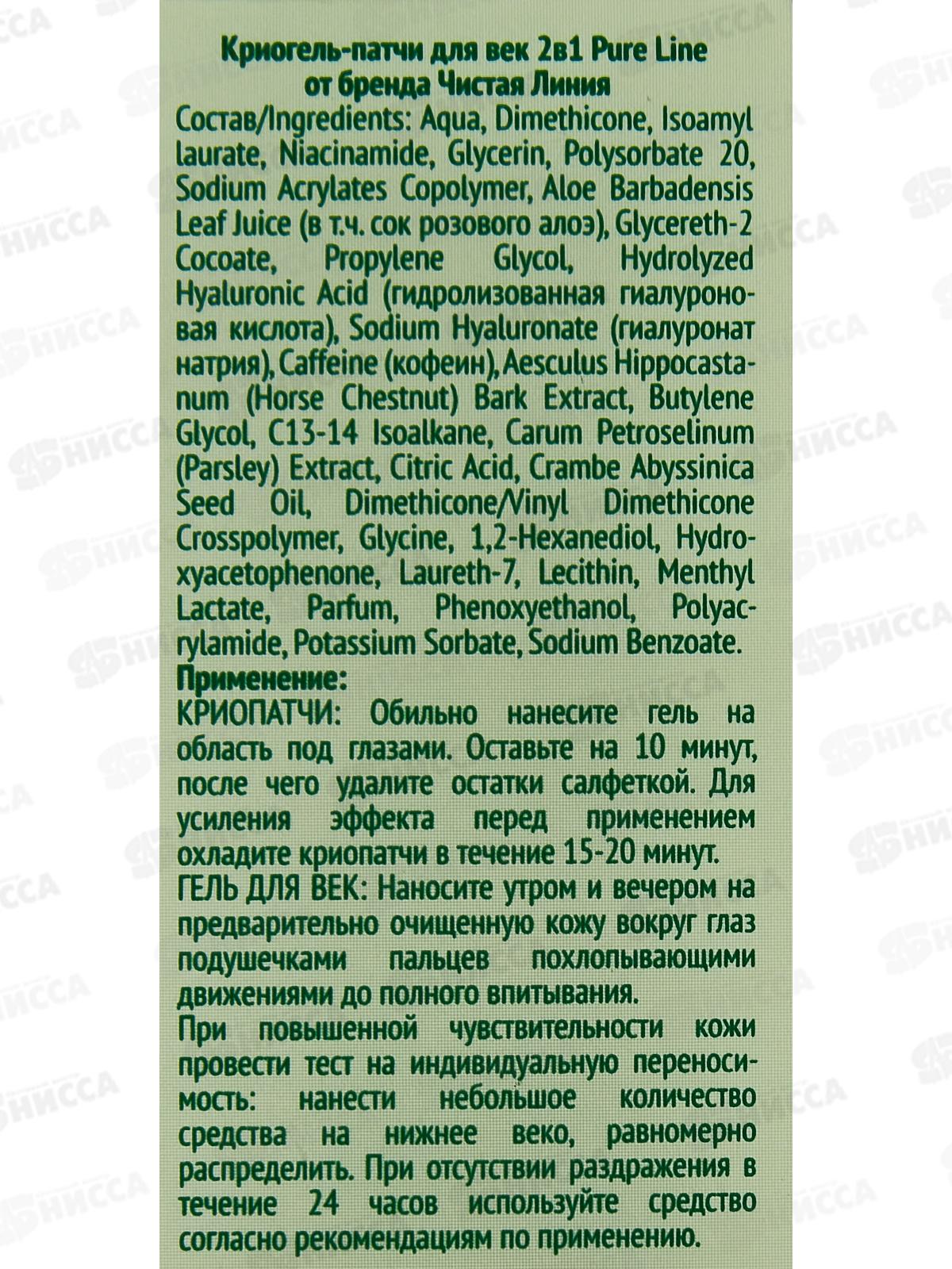 Концерн Калина Чистая Линия PL Криогель для век 2в1 30мл *12