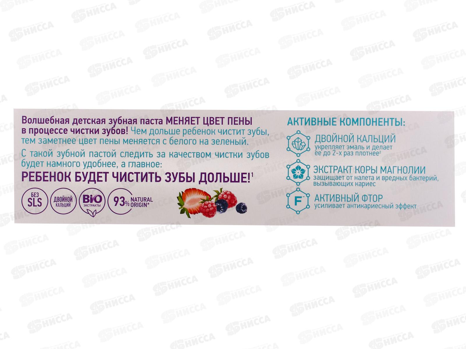 Действие: детская зубная паста меняет цвет пены при чистке зубов и содержит двойной к