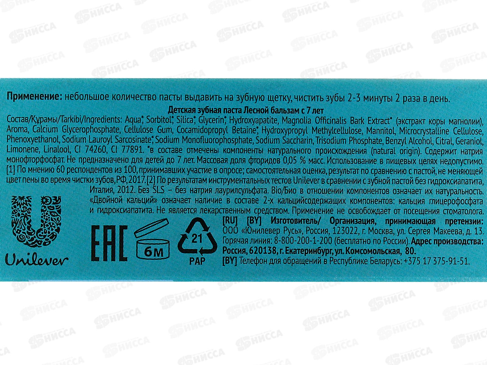 Концерн Калина ЛЕСНОЙ БАЛЬЗАМ в футляре зубная паста 50мл Детская с 7 лет 12/24