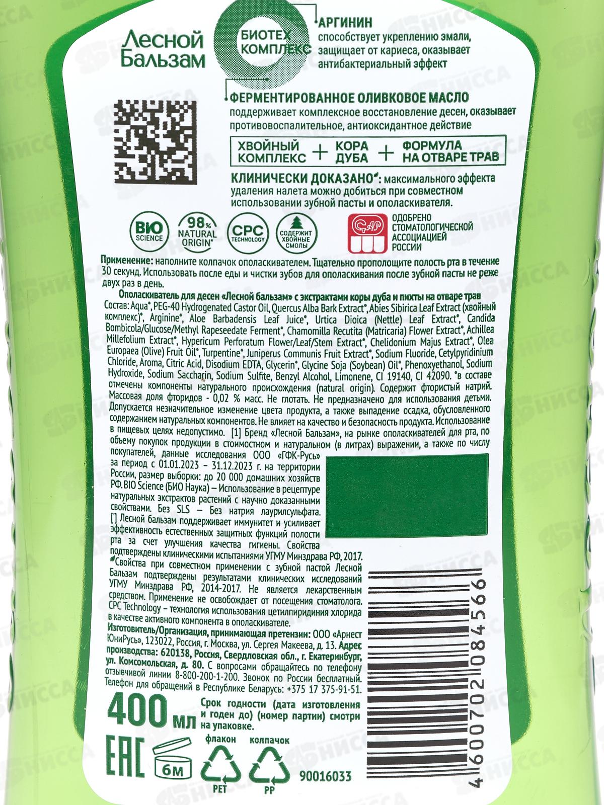 Концерн Калина ЛЕСНОЙ БАЛЬЗАМ ополаскиватель для полости рта 400мл кора дуба/пихта *12