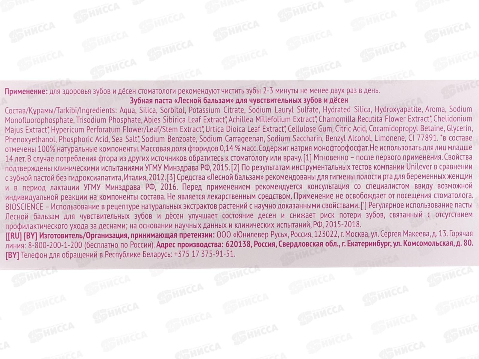 Концерн Калина ЛЕСНОЙ БАЛЬЗАМ в футляре зубная паста 75гр для чувств зубов и десен *12/48