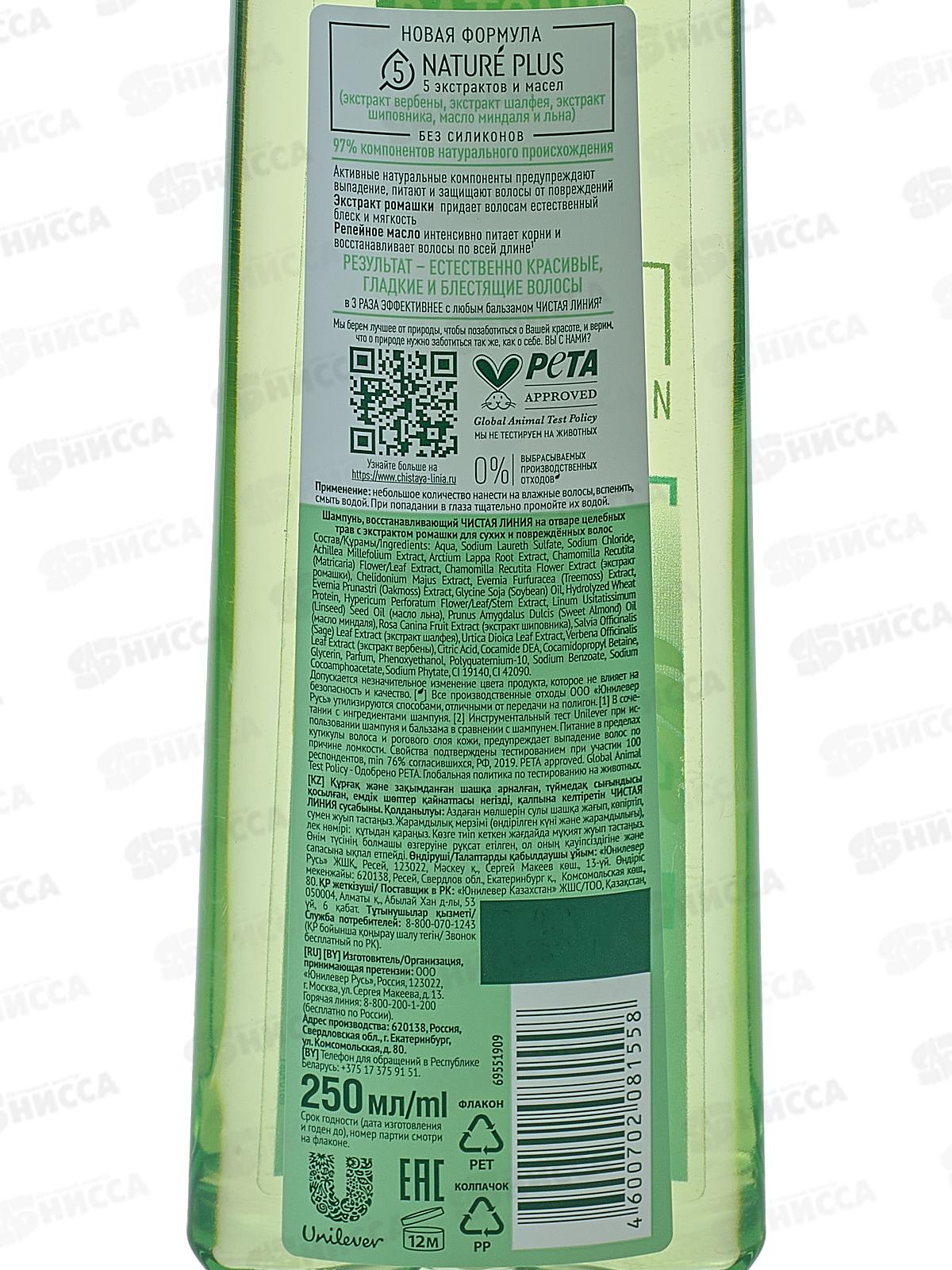 Концерн Калина Чистая Линия шампунь 250мл Ромашка для сухих *6/12