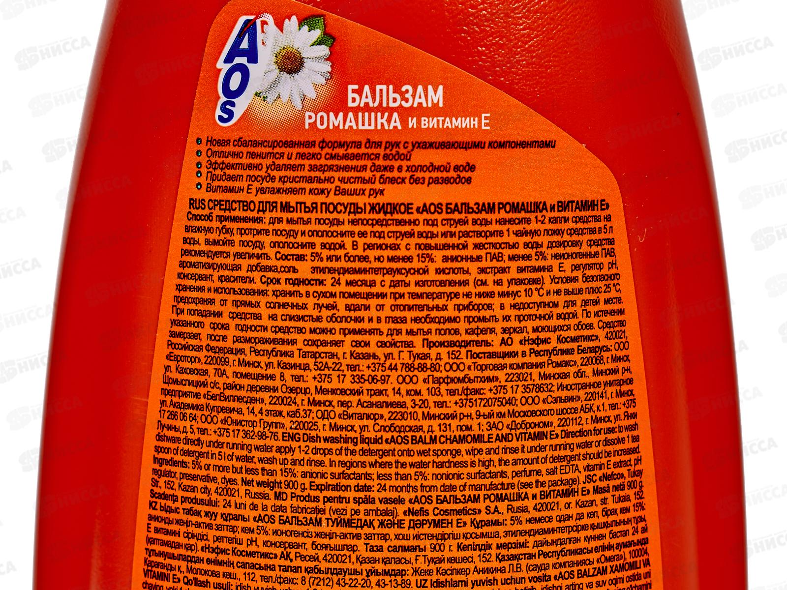 АОС для посуды 900мл Бальзам ромашка и Витамин Е *12 /1115-3