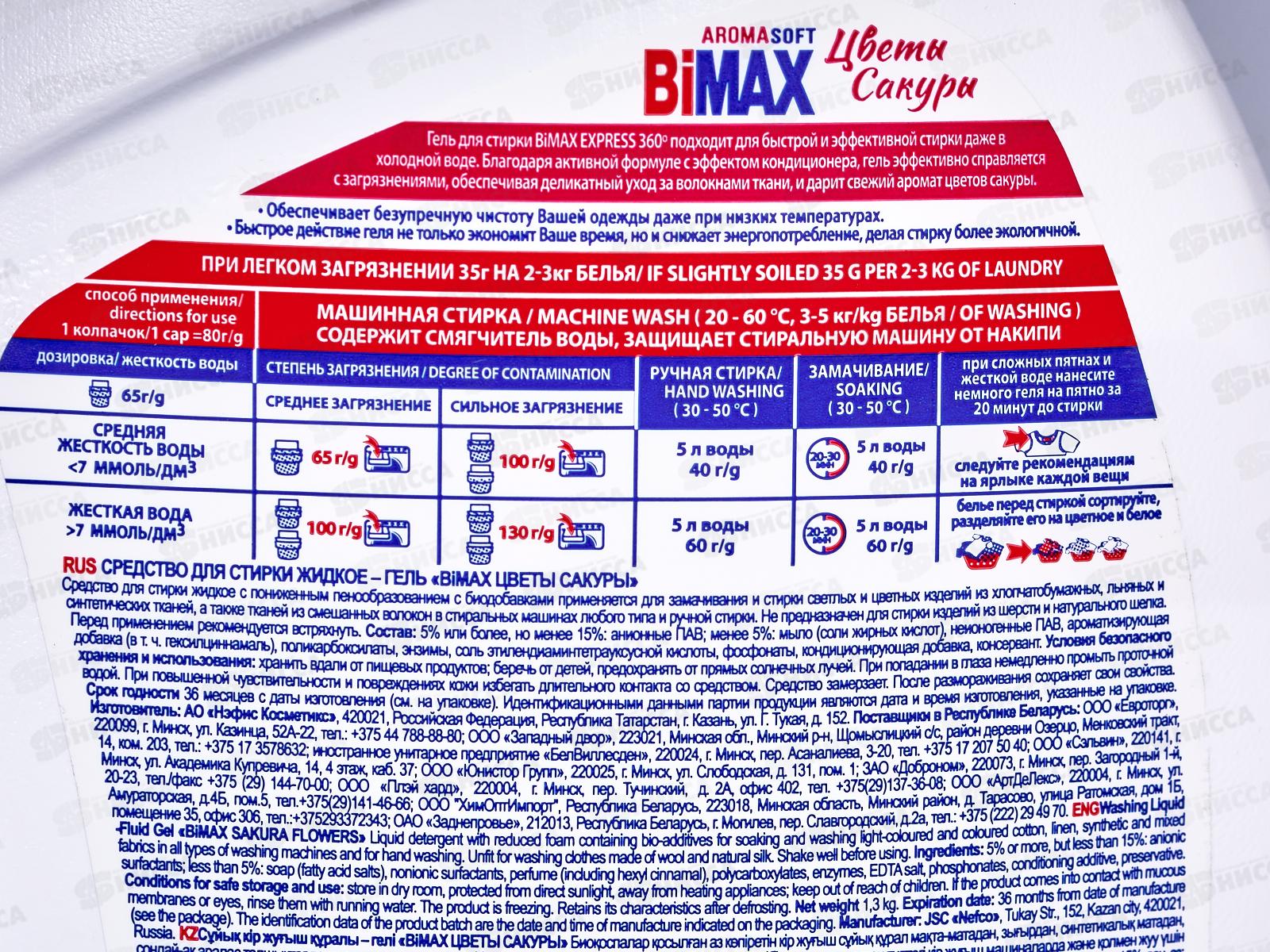 БИМАКС-гель для стирки Цветы Сакуры 1,3л *4 /2095-3