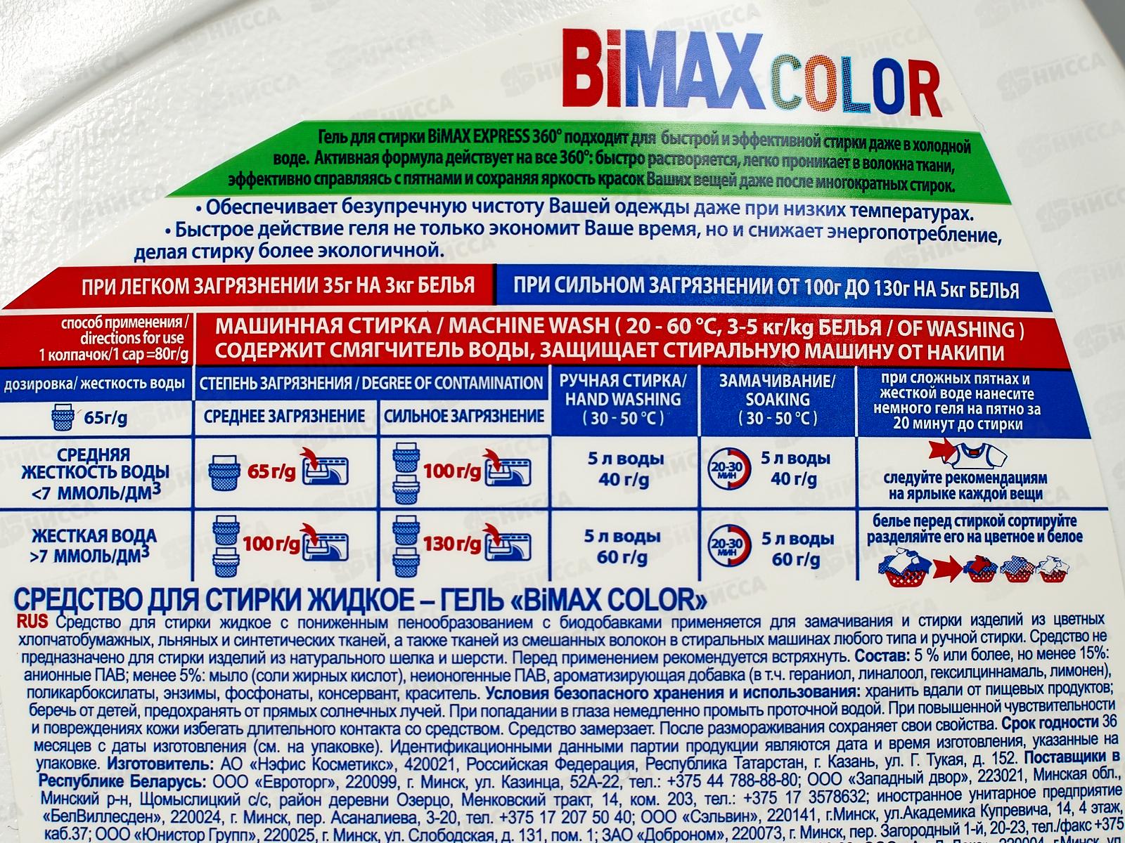 БИМАКС-гель для стирки Color 1,95л *4 /2005-3