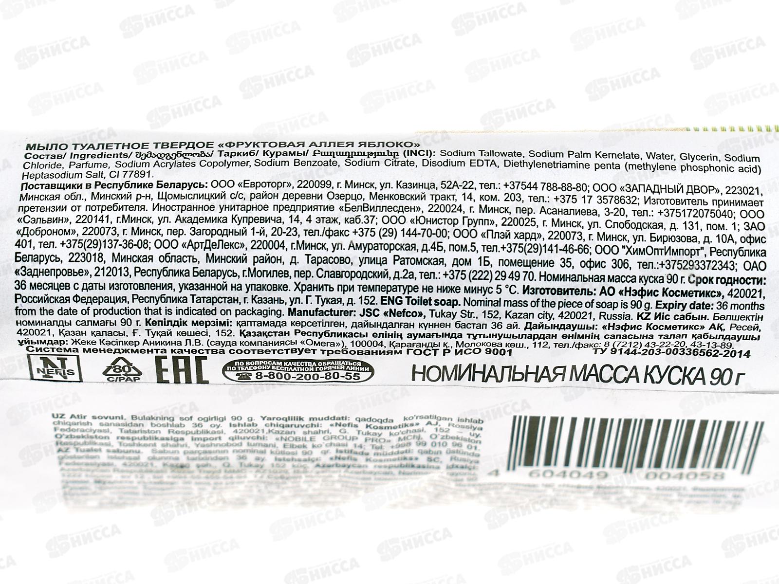 ФРУКТОВАЯ АЛЛЕЯ мыло 90гр Яблоко *104 /522-2