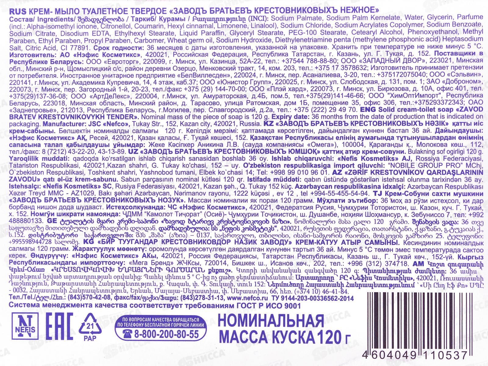 Мыло ЗБК Нежное 120гр (крем-мыло) * /638-2