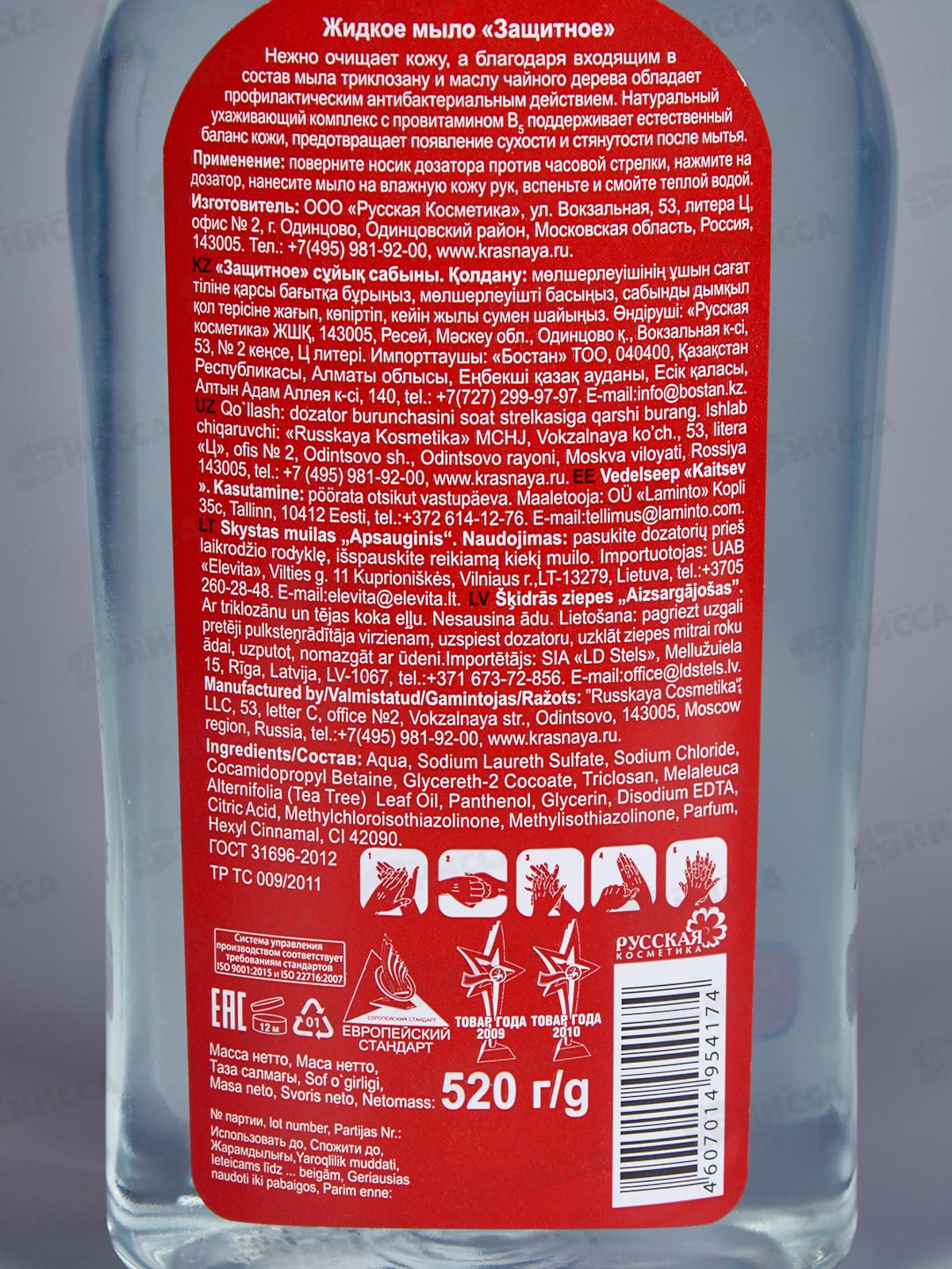КРАСНАЯ ЛИНИЯ мыло жидкое Защитное 520мл *12