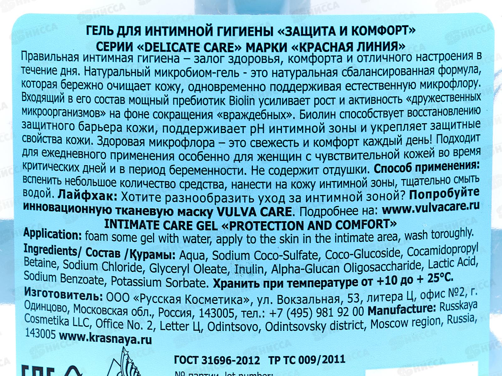 КРАСНАЯ ЛИНИЯ Гель для интимной гигиены Защита и комфорт 300мл *12