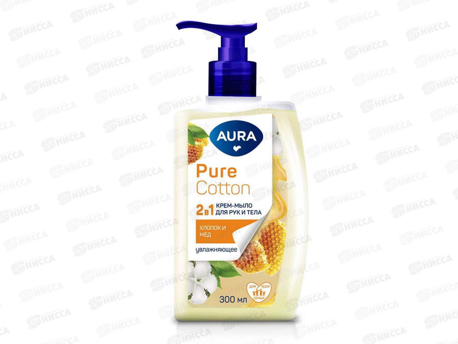 АУРА P.С. Крем-мыло 2в1 для рук и тела Хлопок и мед 300мл дозатор *12