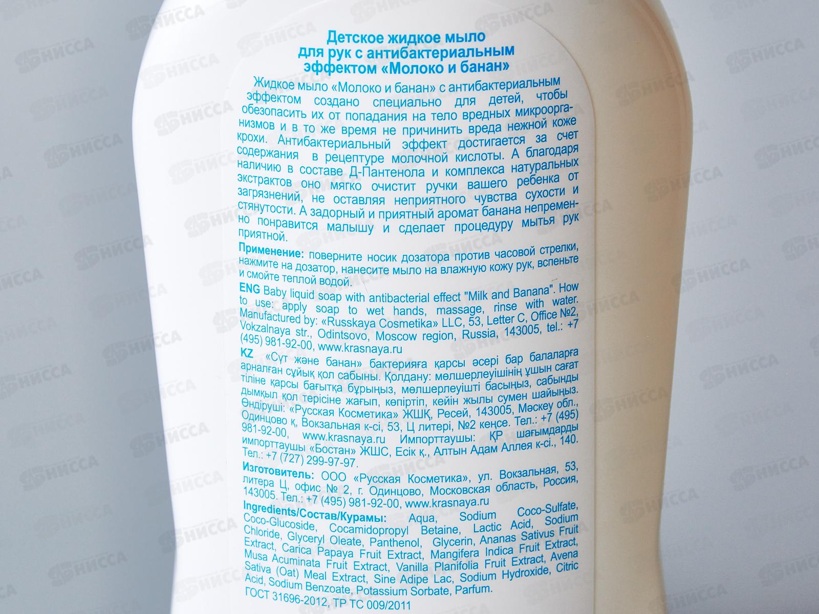КРАСНАЯ ЛИНИЯ мыло жидкое Детское Молоко и Банан антибактериальное 500г *12