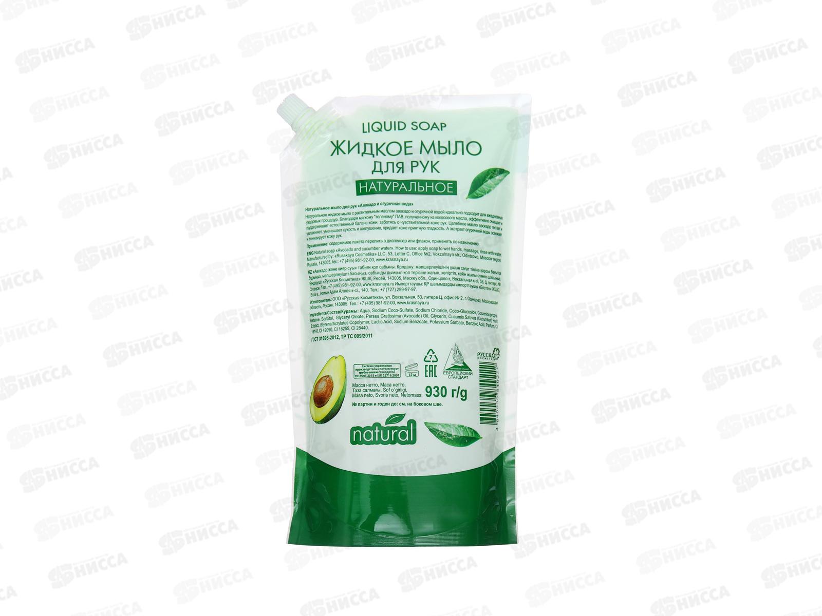 КРАСНАЯ ЛИНИЯ мыло Натуральное Авокадо и огуречная вода 930г дойпак *6