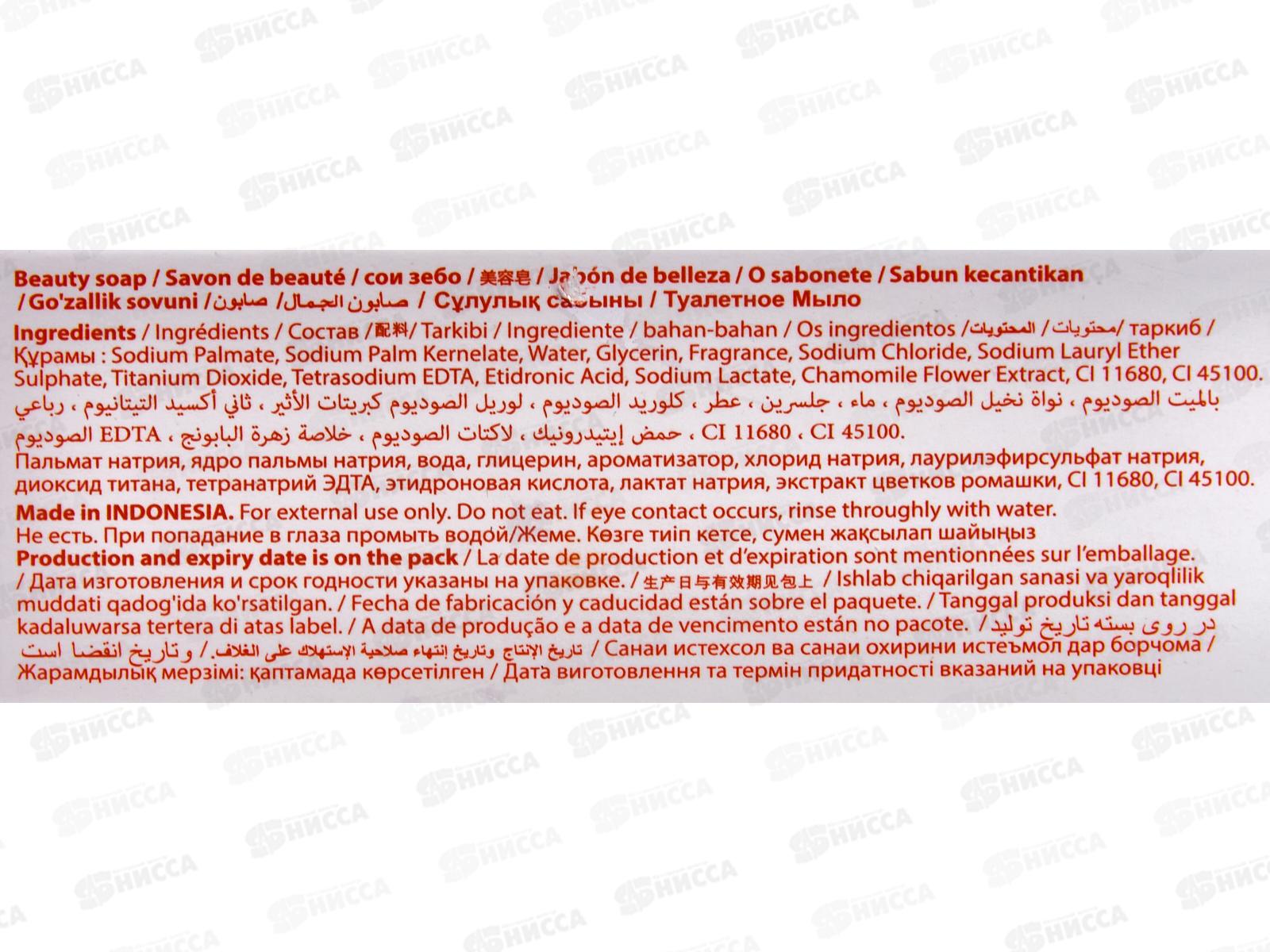 Состав: пальмат натрия, ядро пальмы натрия, вода, глицерин, ароматизатор, хлорид натрия, лаурилэфирсульфат натрия, диоксид титана, тетранатрий ЭДТА, этидроновая кислота, лактат натрия, экстракт цветков ромашки, Cl 11680, CI 45100.