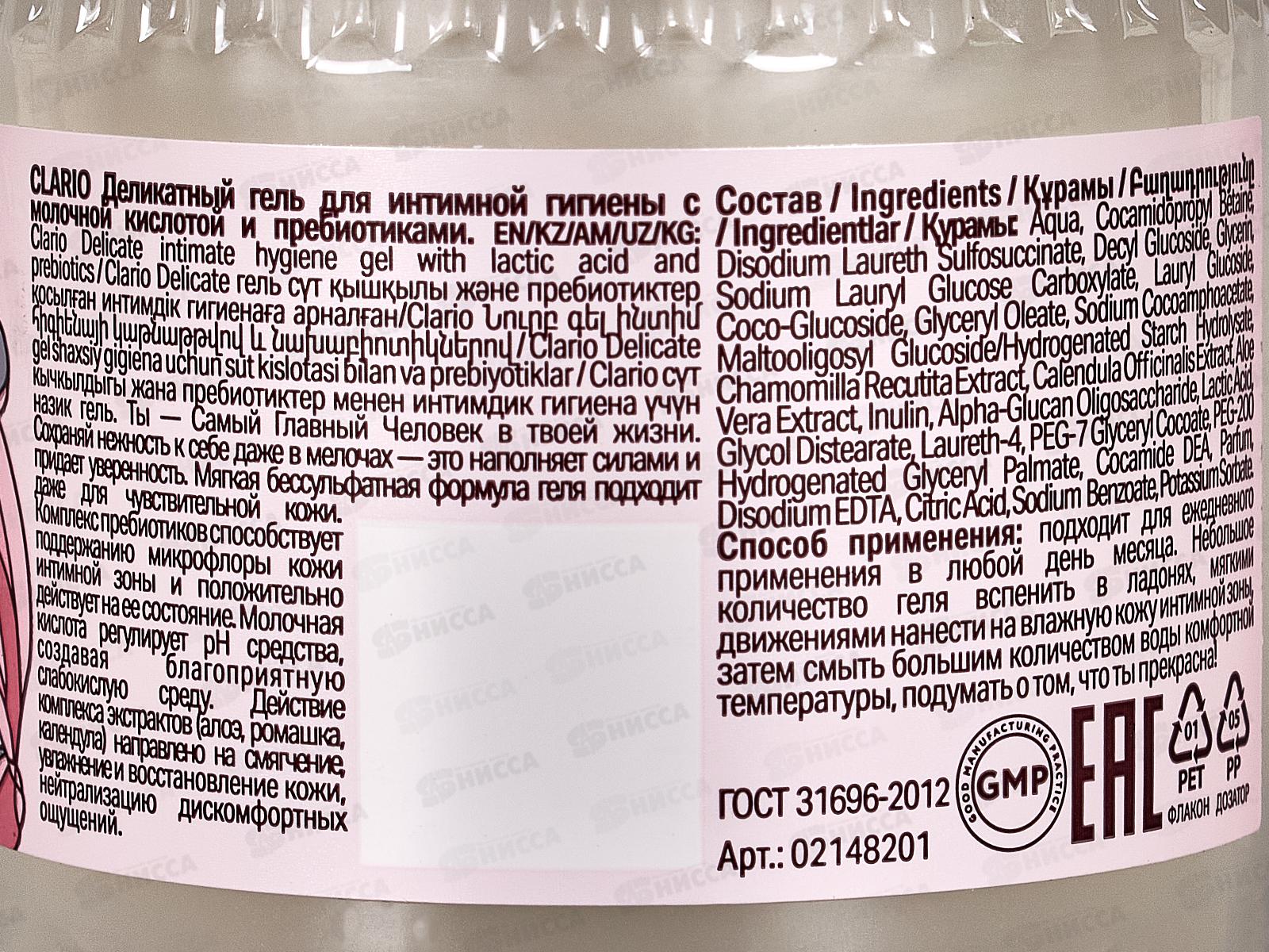 Clario Мягкий освежающий гель для интимной гигиены с молочной кислотой и трег 295мл *6