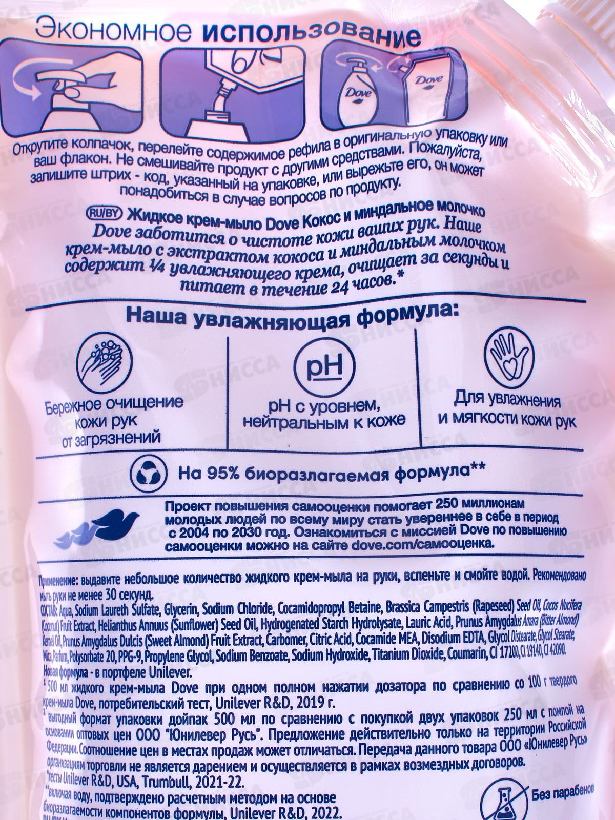 ДАВ крем-мыло жидкое 500гр Кокос и мендальное молочко з/б *6