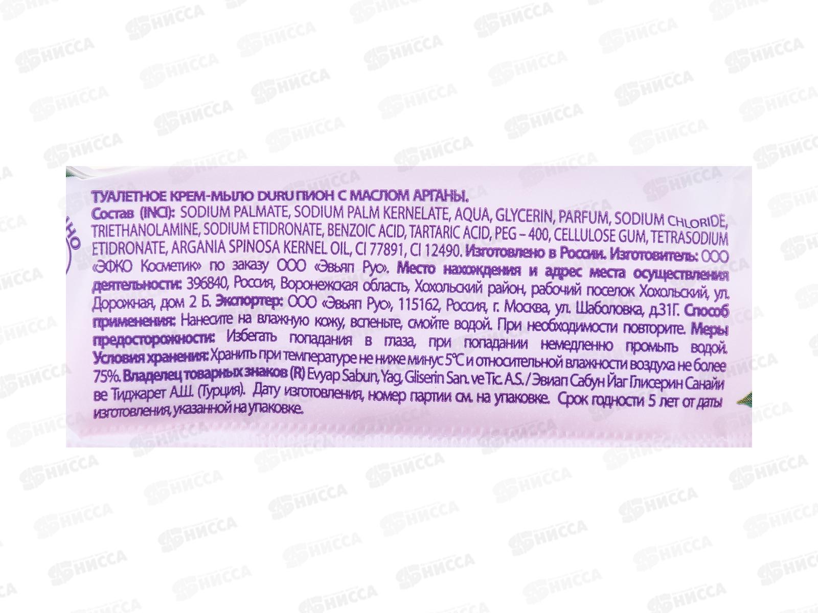 ДУРУ крем-мыло 80г Пион с маслом Арганы *12/24