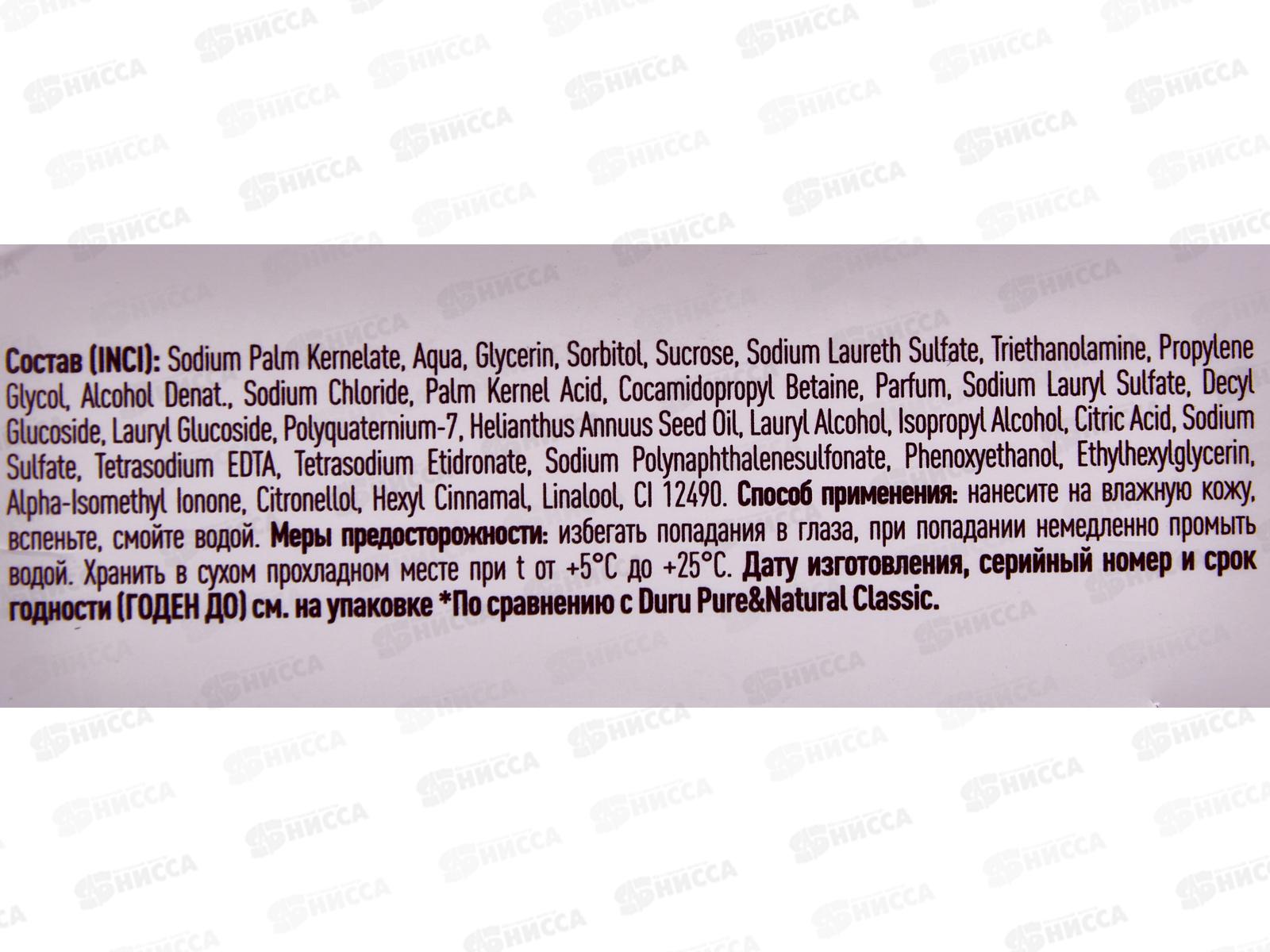 Состав: пальмоядровый кернелат натрия, вода, глицерин, сорбитол, сахароза, лауретсульфат натрия, триэтаноламин, пропиленгликоль, денатурированный спирт, хлорид натрия, пальмоядровая кислота, кокамидопропилбетаин, партум, лаурилсульфат натрия, децилглюкозид, лаурилглюкозид, поликватерниум-7, масло семян подсолнечника однолетнего, лауриловый спирт, изопропиловый спирт, лимонная кислота, сульфат натрия, тетранатрий ЭДТА, тетранатрий этидронат, полинафталинсульфонат натрия, феноксиэтанол, этилгексилглицерин, альфа-изометил ионон, цитронеллол, гексилциннамаль, линалоол, CI 12490.