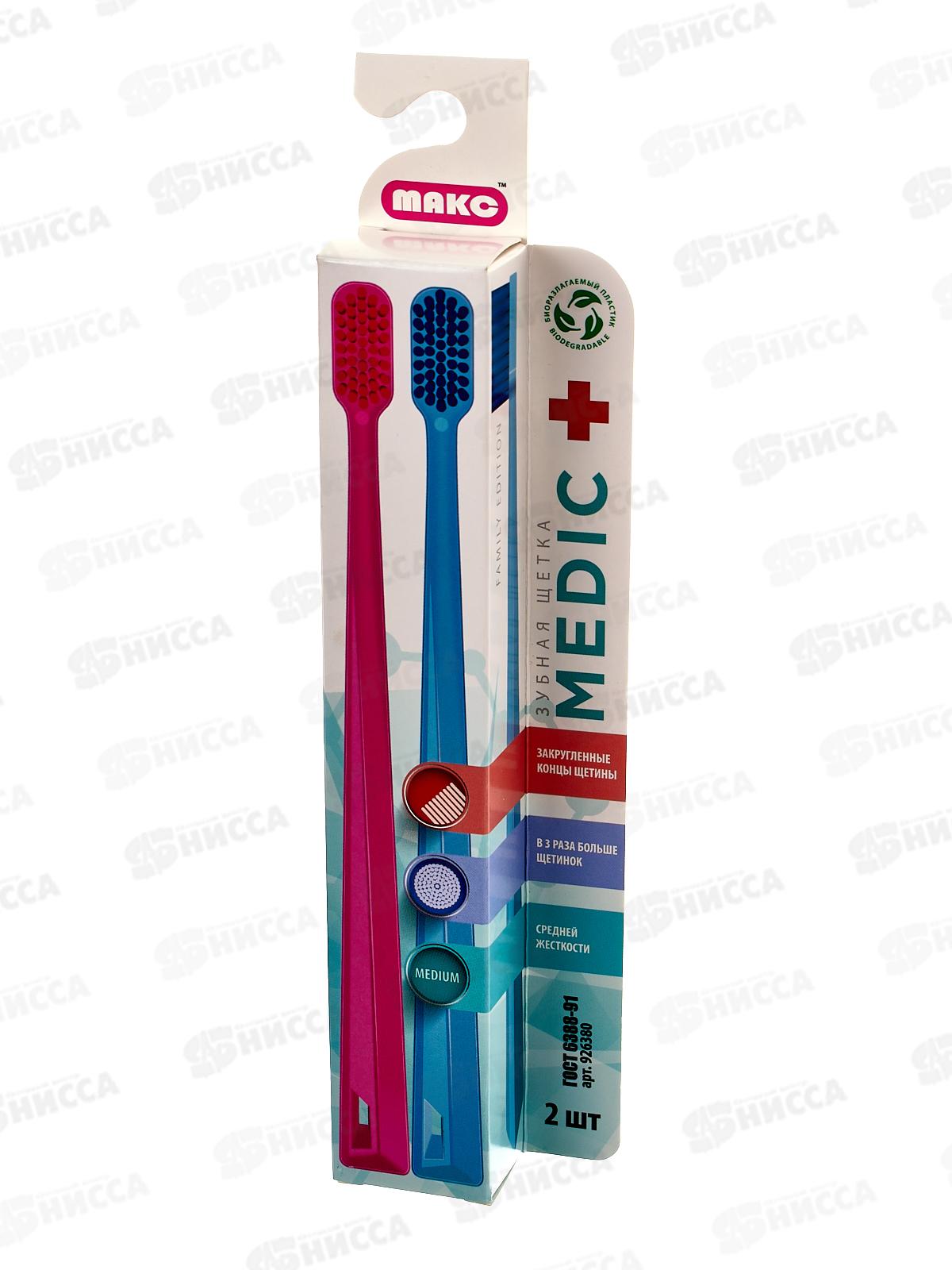 Зубная щетка Медик биоразлагаемая 2шт средняя голубой+розовый *20