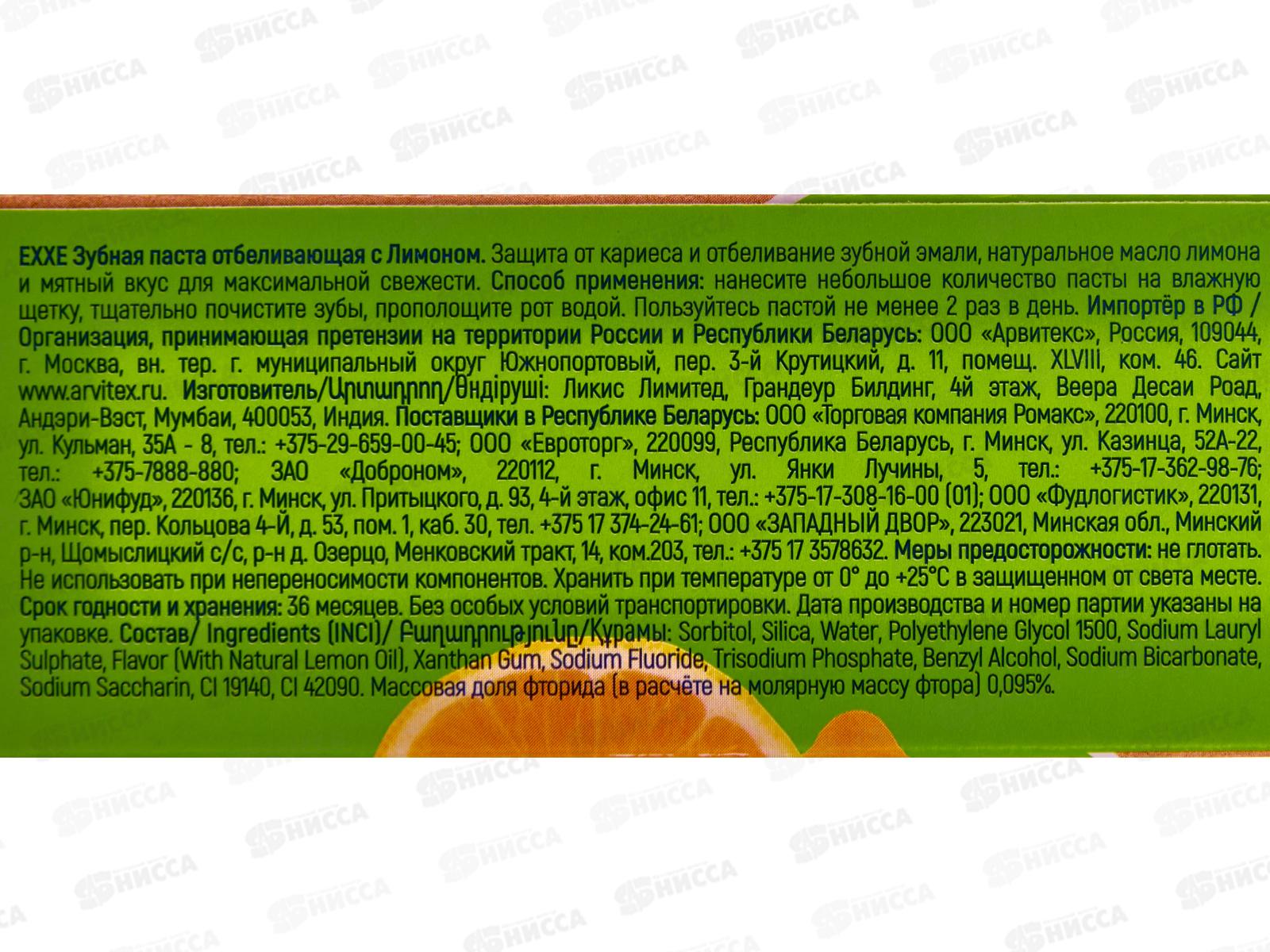 EXXE зубная паста Отбеливающая с лимоном 100мл *24 С0007358
