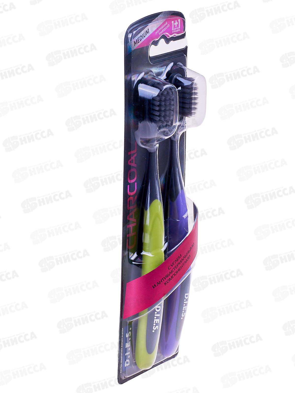 D.I.E.S. зубная щетка Charcoal 1+1 2шт средняя 9660 *12
