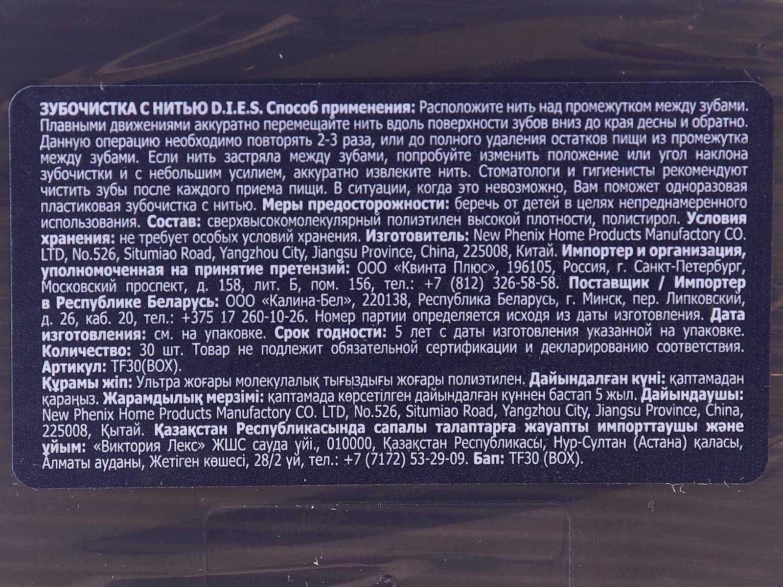 D.I.E.S. Зубочистки с нитью Black Edition С мятой 30шт 8877