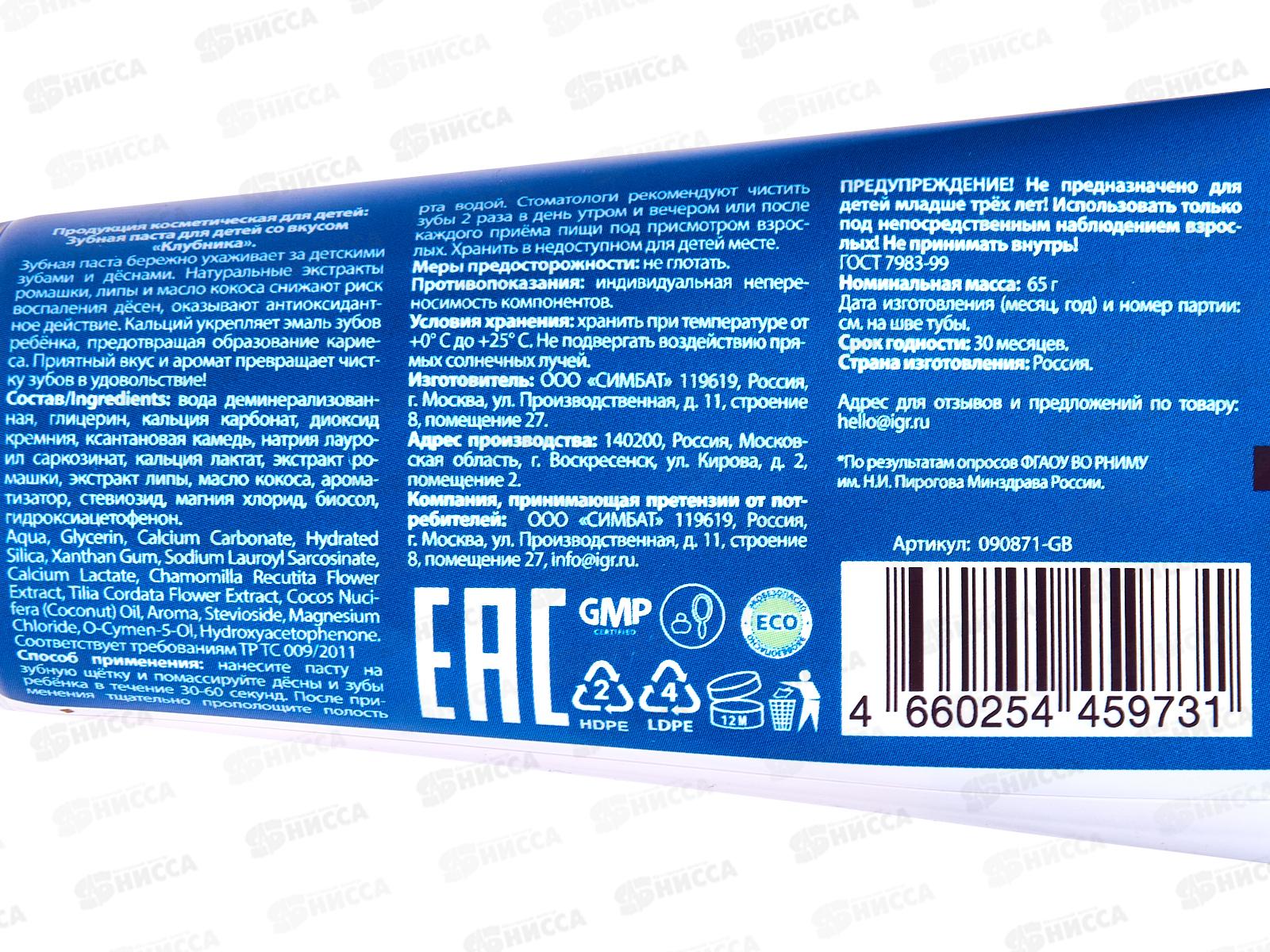 УМКА MASTER DENT зубная паста детская Губка спонж Клубника 65г *24