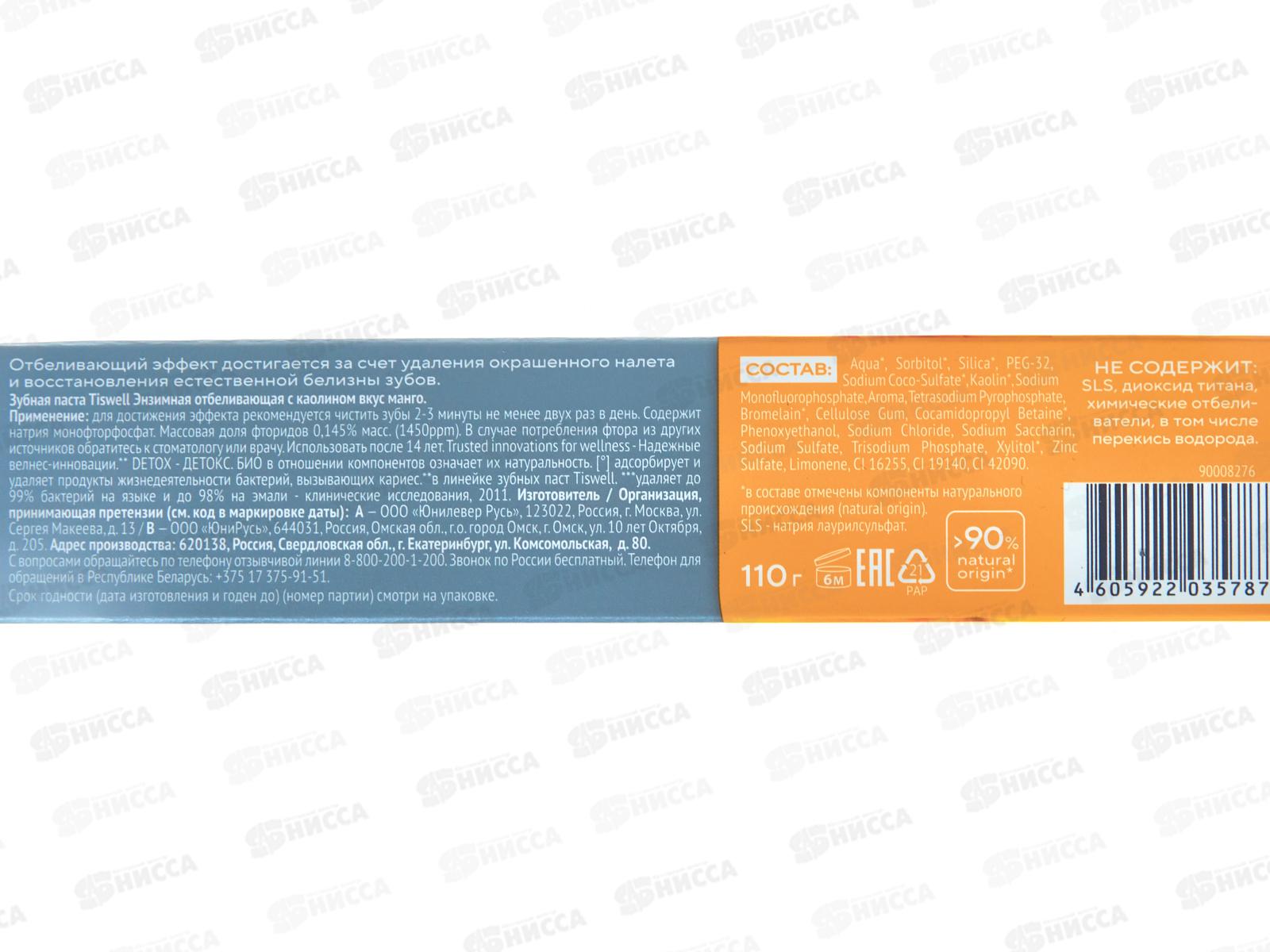 Tiswell зубная паста 110гр Detox Отбеливающая энзимная Манго *9