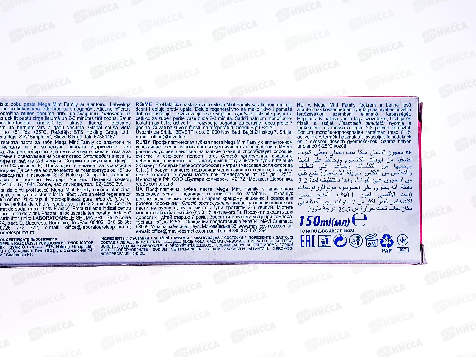 АКВАРЕЛЬ МЕГА МИНТ Family зубная паста 210грамм *36