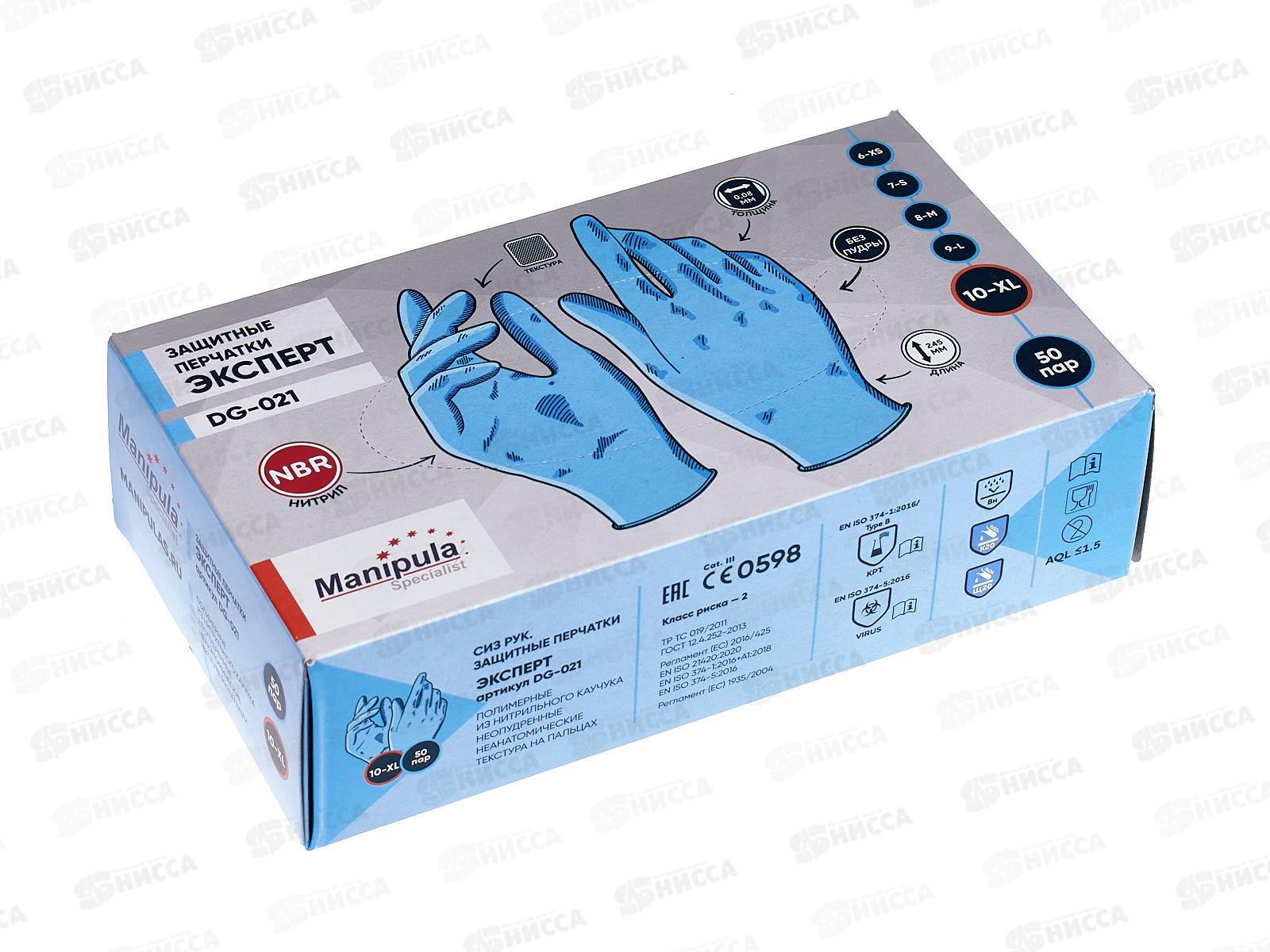 Перчатки ЭКСПЕРТ DG-021 (10) ,нитрил, голубой 0,08мм без пудры *50