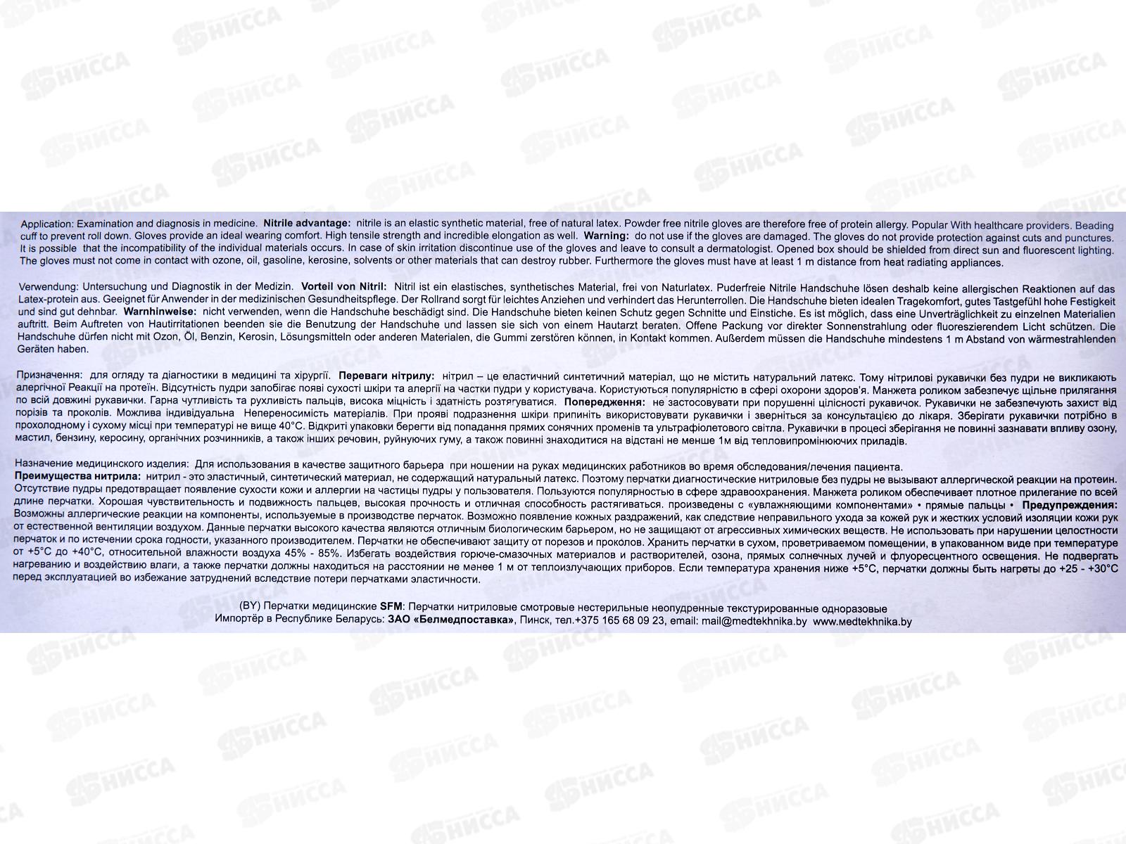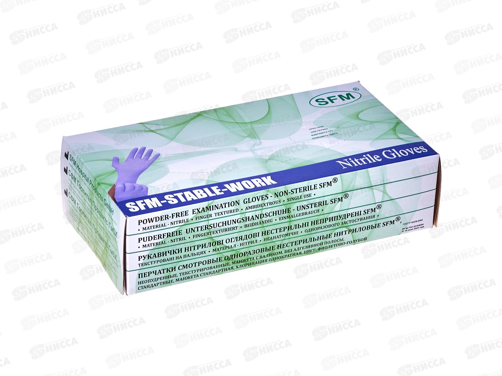 Перчатки нитриловые SFM S н/стер, н/опудр,текстур фиолет-голуб *50