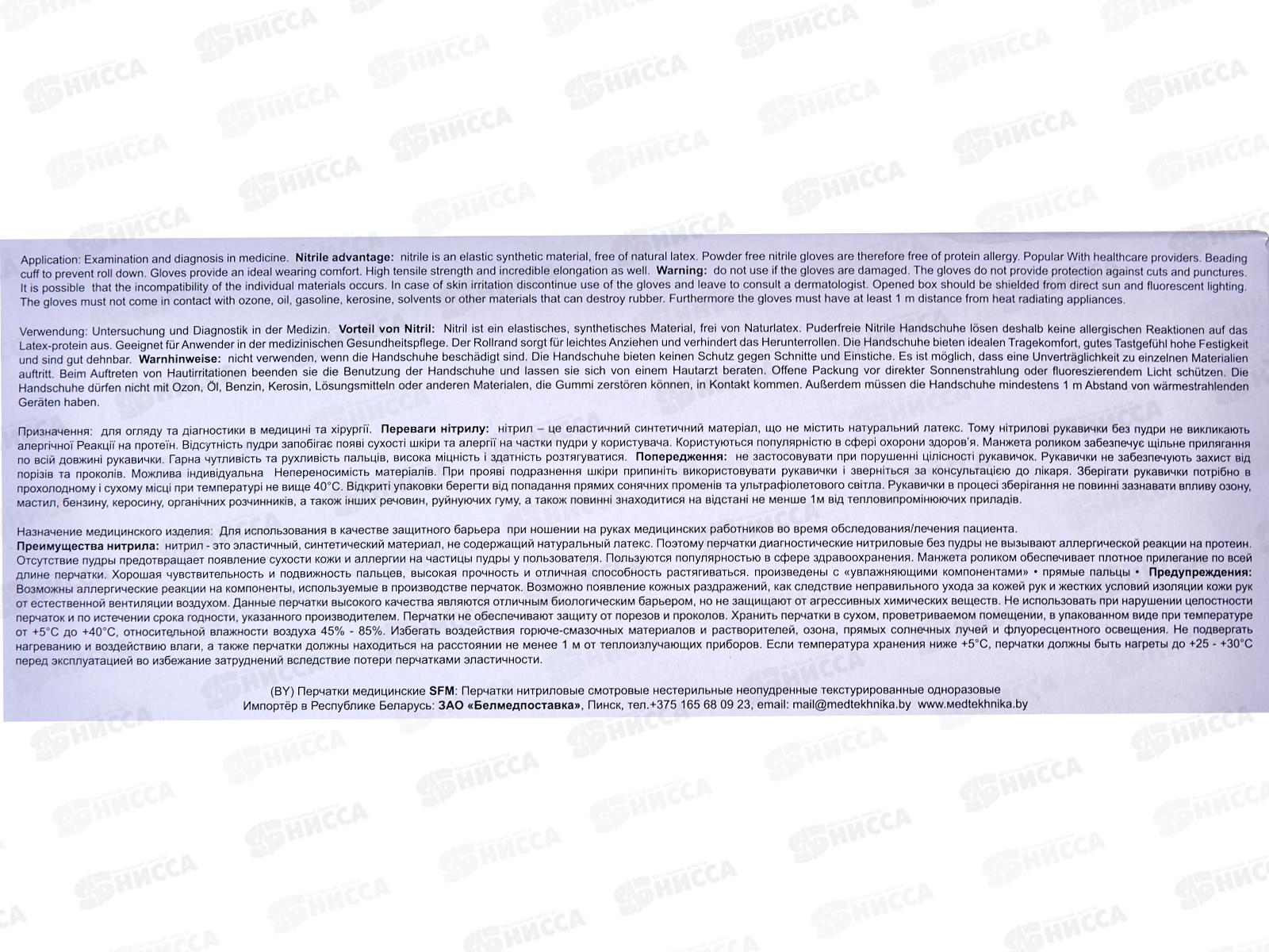 Перчатки нитриловые SFM L нестерильные, неопудренные,текстур фиолетово-голубые *50