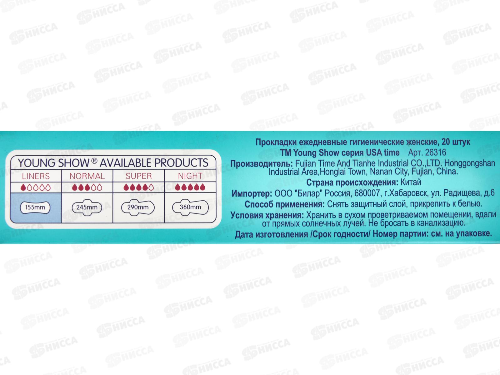 Young Show USA T.M.W. прокладки ежедневные 20шт 15,5см *50