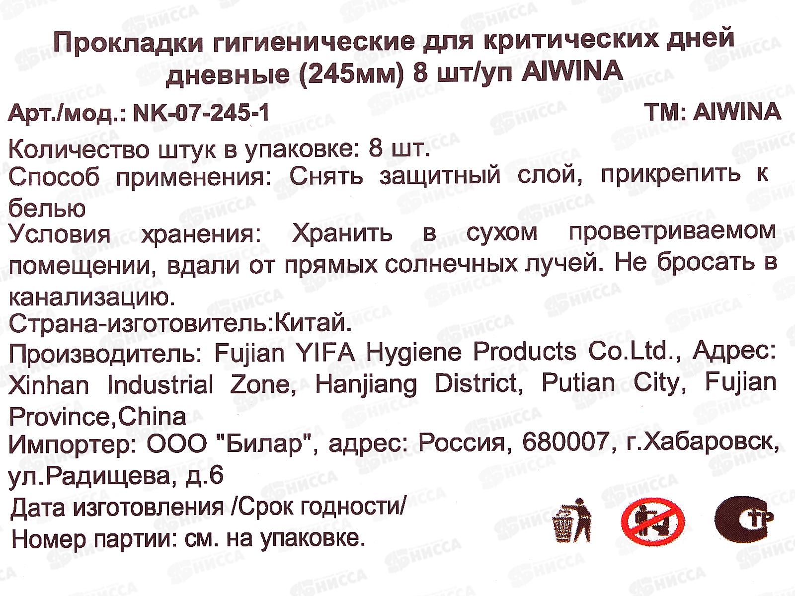 Aiwina прокладки гигиенические день 8шт 24,5см *48