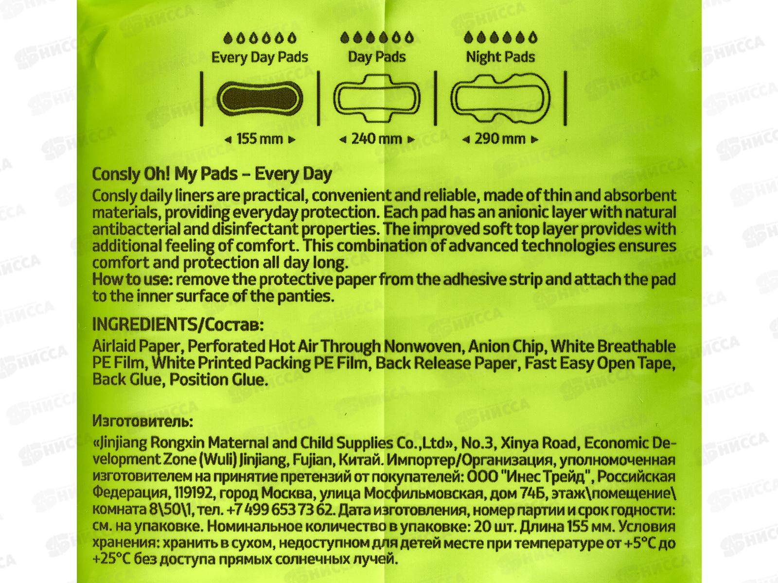 Consly Ежедневные гигиенические прокладки On! My Pads 20шт 710637