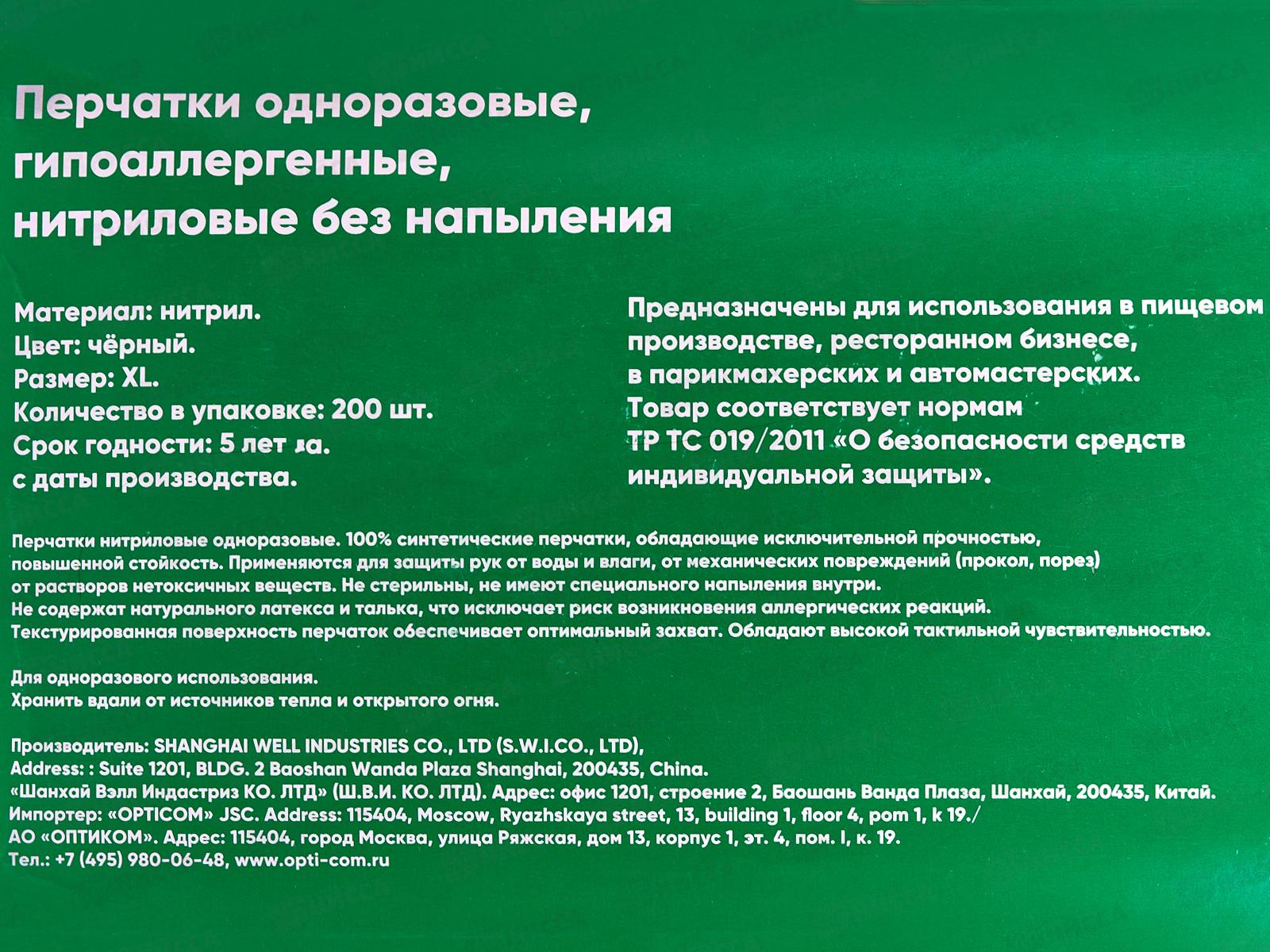 Перчатки Optiline нитриловые черные XL, 27-2664 *100/1000