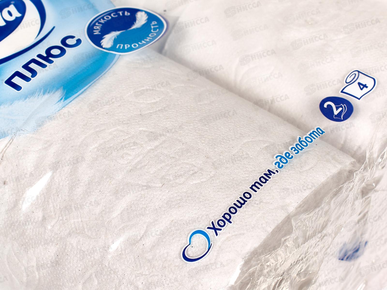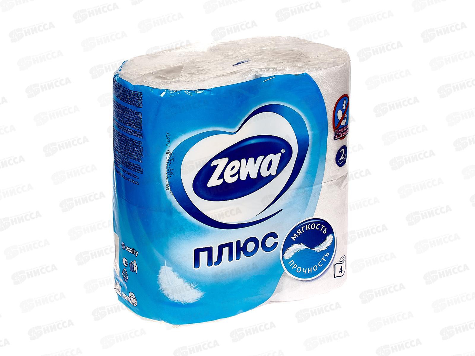 Бумага туалетная ЗЕВА+ 2-х слойная белая 4шт *24
